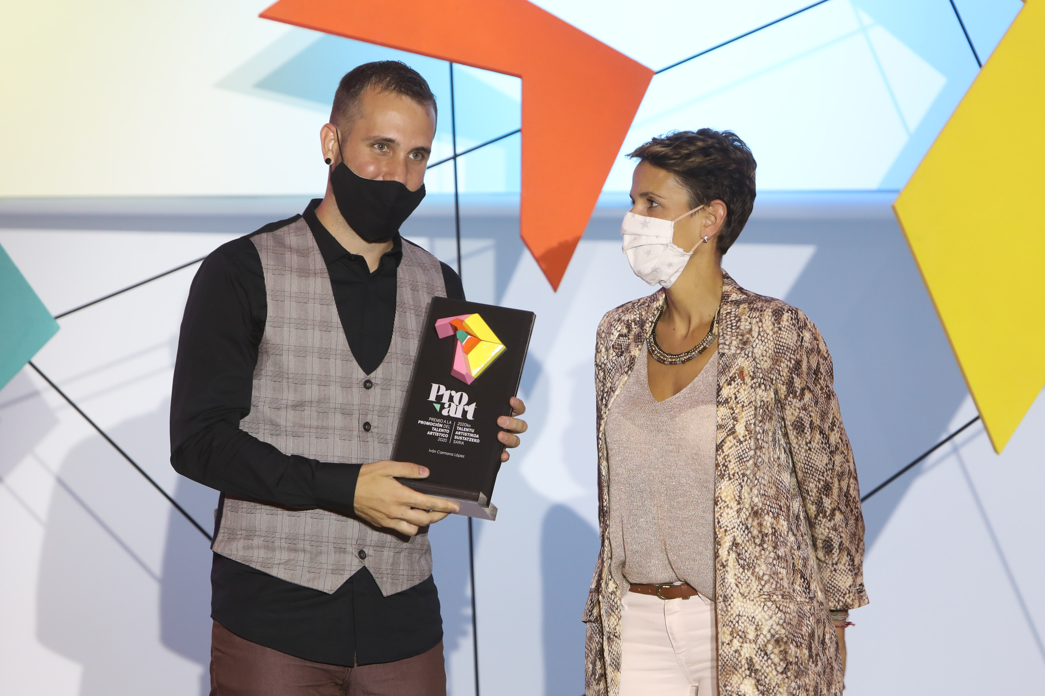 La Presidenta del Gobierno de Navarra, María Chivite, ha entregado hoy el I Premio a la Promoción al Talento Artístico al músico Iván Carmona, resaltando su “innegable talento”, su “temprana vocación” y su “identidad propia”. El galardón, recién instaurado, nace con vocación de apoyar e impulsar la iniciativa de jóvenes emprendedores en el ámbito artístico y cultural de Navarra, además de servir de referente para la juventud y visibilizar el talento emergente en la Comunidad Foral.