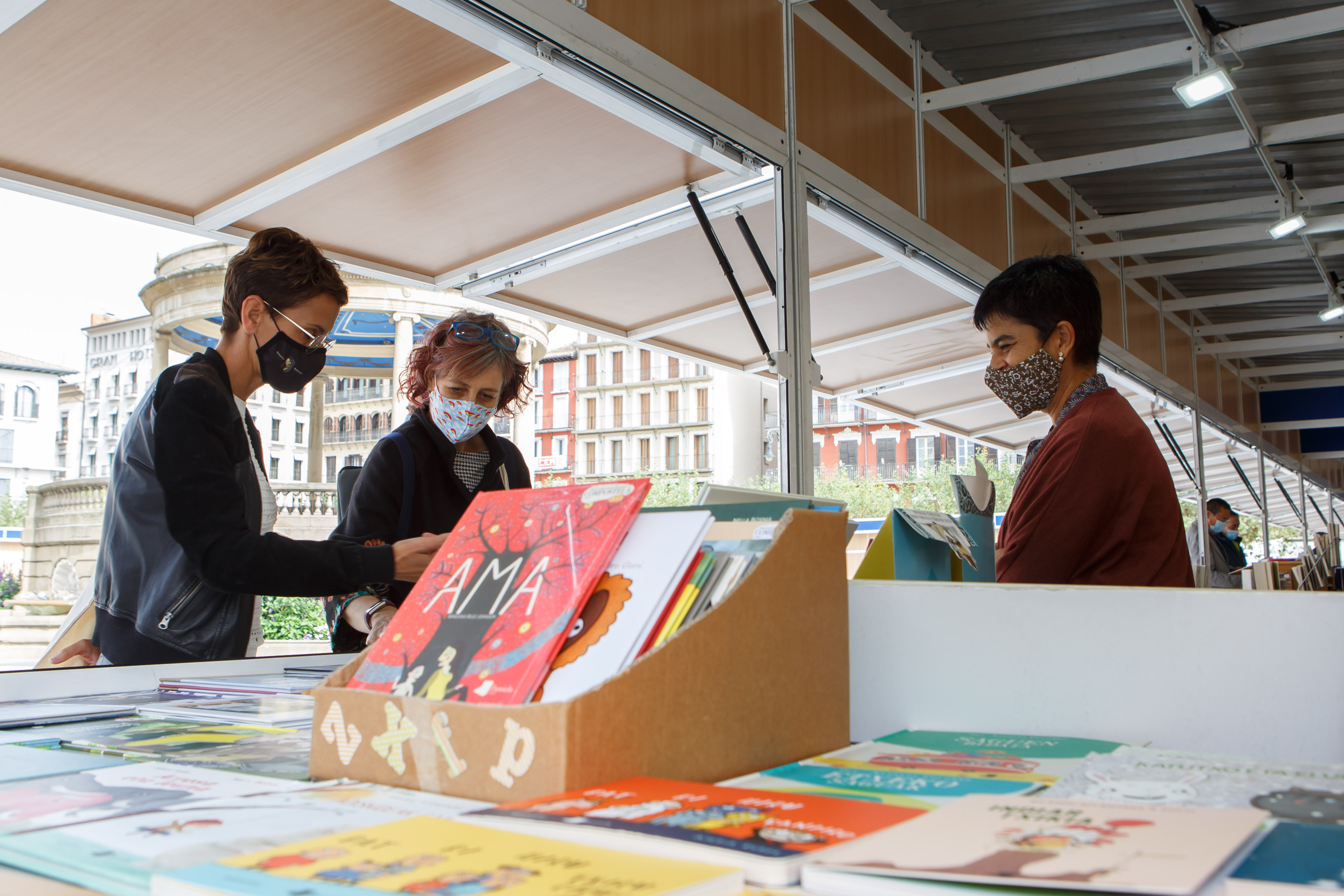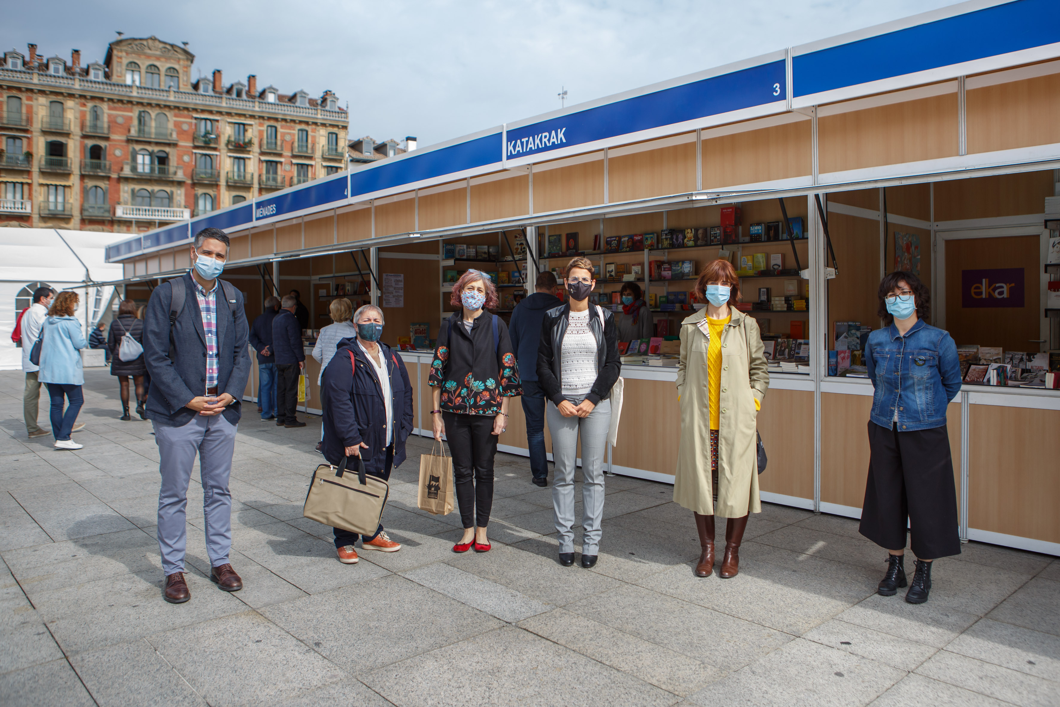 En su recorrido, María Chivite, junto con la consejera de Cultura y Deporte, Rebeca Esnaola, ha estado acompañada por el presidente de la Asociación de Editores de Navarra (Editargi), Aritz Otazu; la presidenta de la Asociación de librerías de Navarra Diego de Haro, Raquel Anocibar; y el presidente de la Asociación de Libro Antiguo de Navarra, Kike Abárzuza. Además, Chivite y Esnaola han saludado a la escritora Irene Vallejo, que esta tarde ofrece una conferencia con motivo de los actos de celebración del 150 aniversario de la Biblioteca de Navarra.