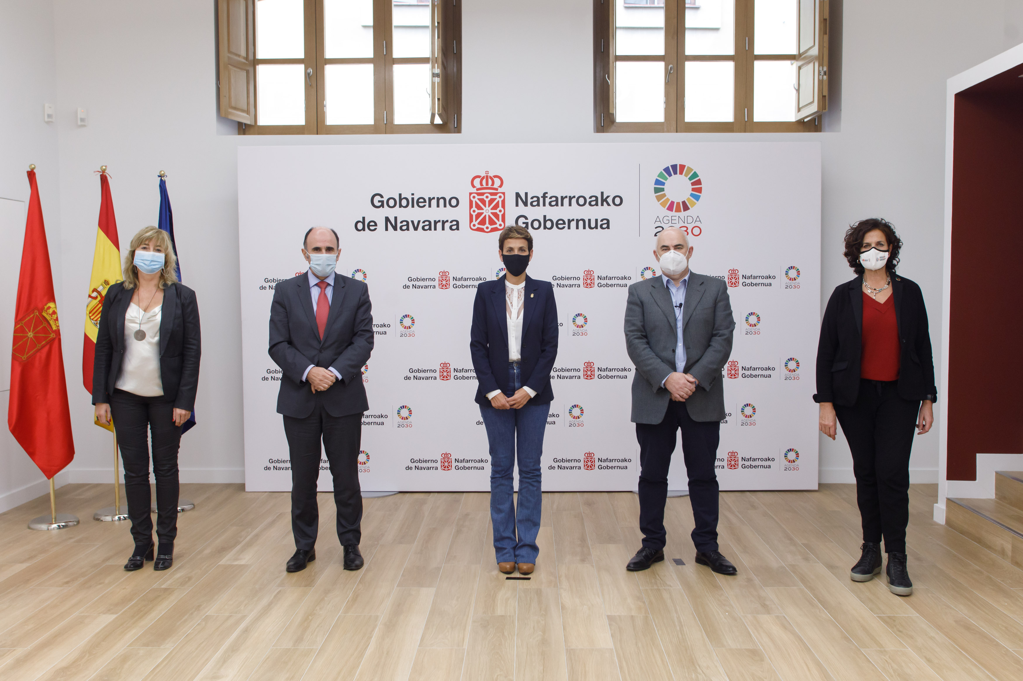 Los proyectos estratégicos de cada línea de acción los han dado a conocer hoy –en un acto celebrado por streaming debido a las restricciones generadas por el COVID-19- la presidenta del Gobierno foral, María Chivite, el vicepresidente y titular de Ordenación del Territorio, Vivienda, Paisaje y Proyectos Estratégicos del Ejecutivo foral, José Mª Aierdi; el consejero de Desarrollo Económico y Empresarial, Manu Ayerdi; la consejera de Medio Ambiente y Desarrollo Rural, Itziar Gómez; –los tres departamentos que, desde su respectivas competencias en materia de sostenibilidad, han coordinado el contenido del proyecto-, así como la consejera de Relaciones Ciudadanas, Ana Ollo, responsable de las relaciones de Navarra con Europa, además de Tim Ash, director de la iniciativa de la Red Climate Group Under2MOU de la UE.