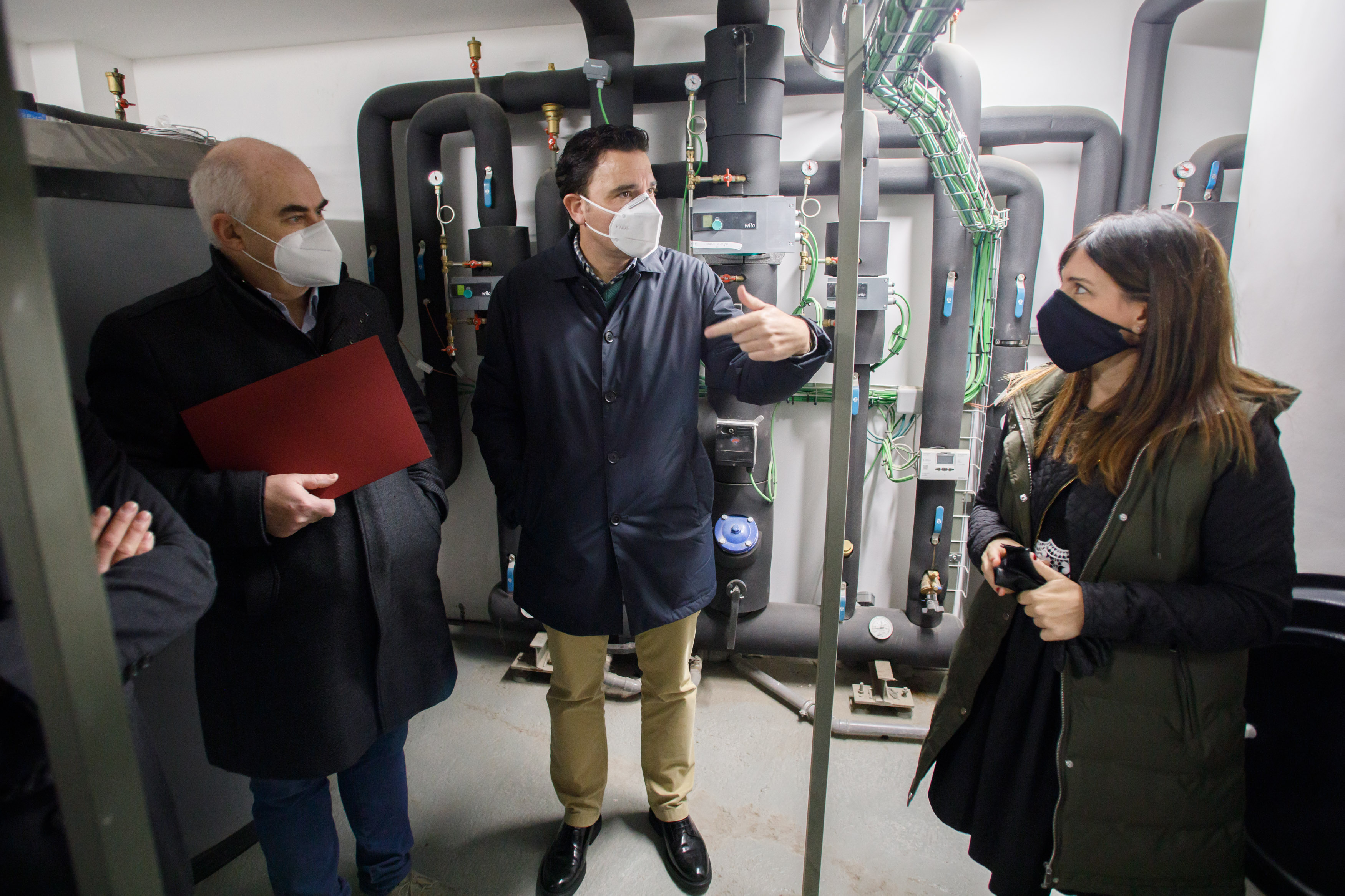 “La caldera de biomasa forestal sigue distinguiendo a todas las nuevas viviendas públicas de alquiler, como fuente central de energía, si bien en esta ocasión hemos añadido como elemento innovador la aerotermia para alimentar el equipo auxiliar de calefacción, para paradas puntuales por mantenimiento o averías, lo que nos permite prescindir totalmente de combustibles fósiles y contribuir con ello a la reducción de la emisión de gases de efecto invernadero a la atmósfera”, ha explicado José Mª Aierdi.