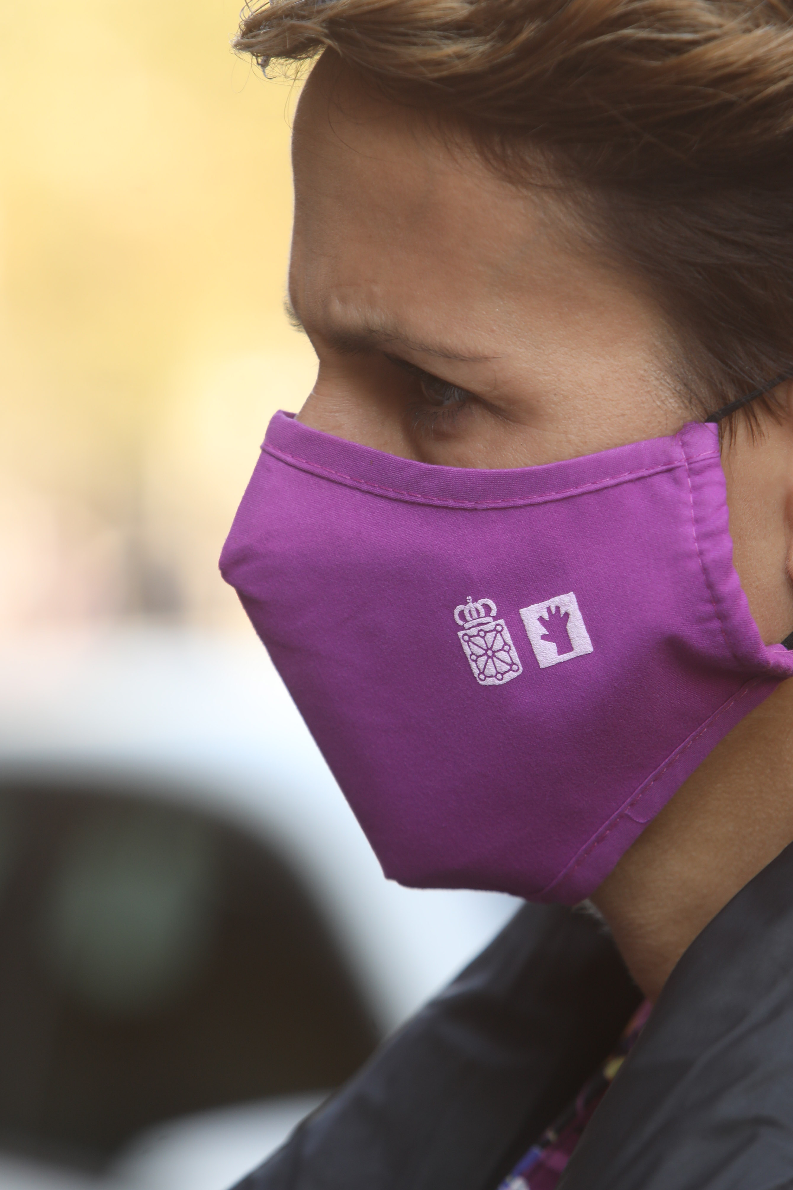 El INAI ha elaborado, coincidiendo con este día, mascarillas higiénicas en color violeta, símbolo de la igualdad de las mujeres, que han portado todos los miembros del Gobierno foral en la concentración.