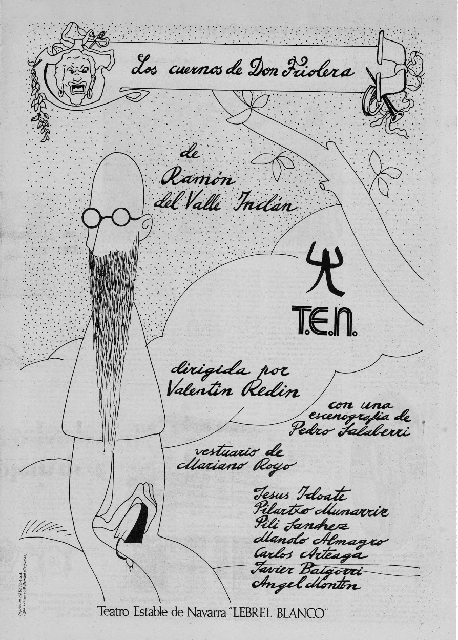 Con apoyo del Ayuntamiento de Pamplona se creó el Premio Nacional de Teatro “El Lebrel Blanco” que ganaron Jorge Díaz, Domingo Miras y Patxi Larrainzar. En esos años, uso en escena varias obras escritas por Patxi Larrainzar en las que se reflexionaba sobre cuestiones de actualidad política como fueron “Carlismo y Música Celestial”, “Utrimque Roditur” y “Navarra sola o con leche”, esta última una de sus obras más representadas.