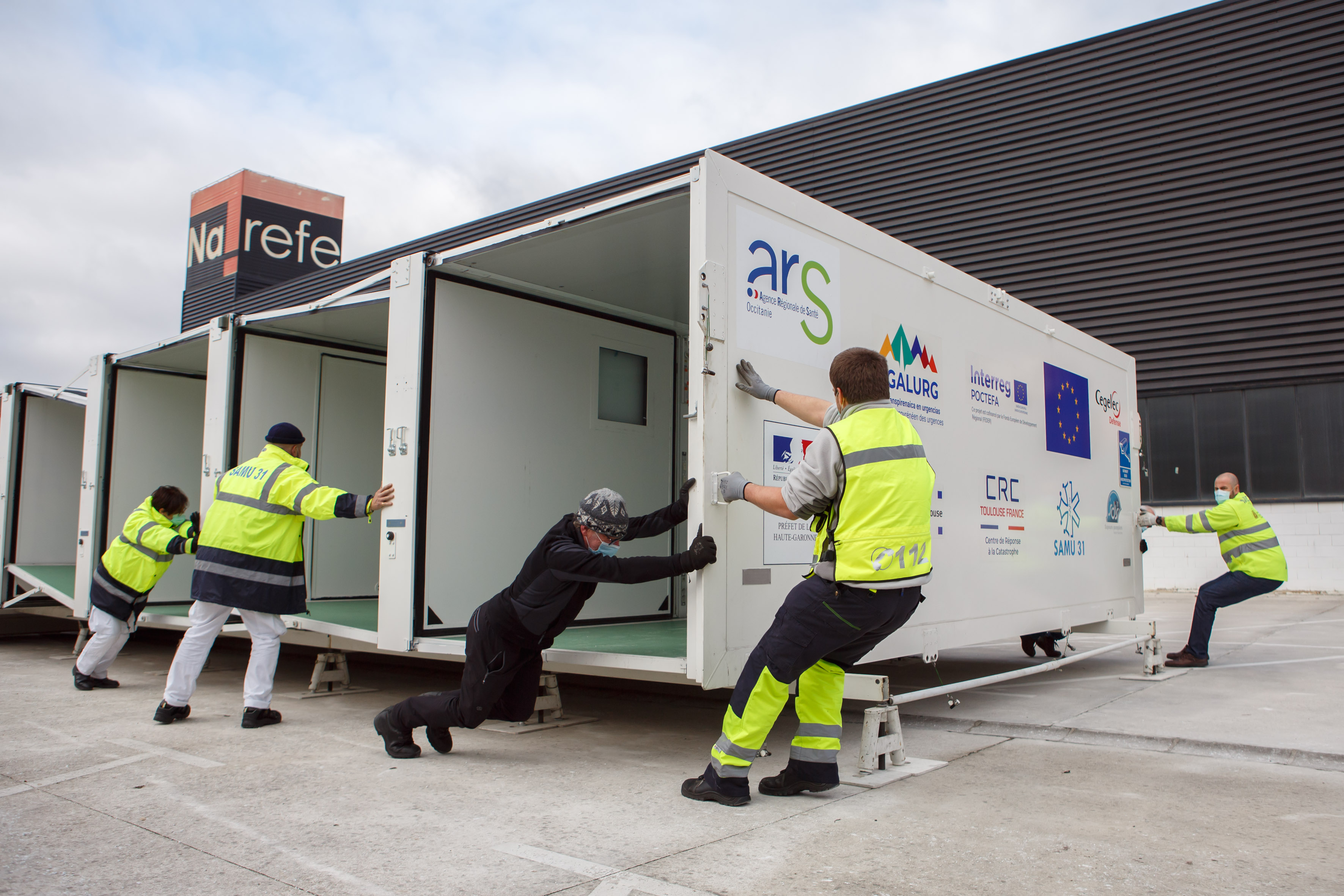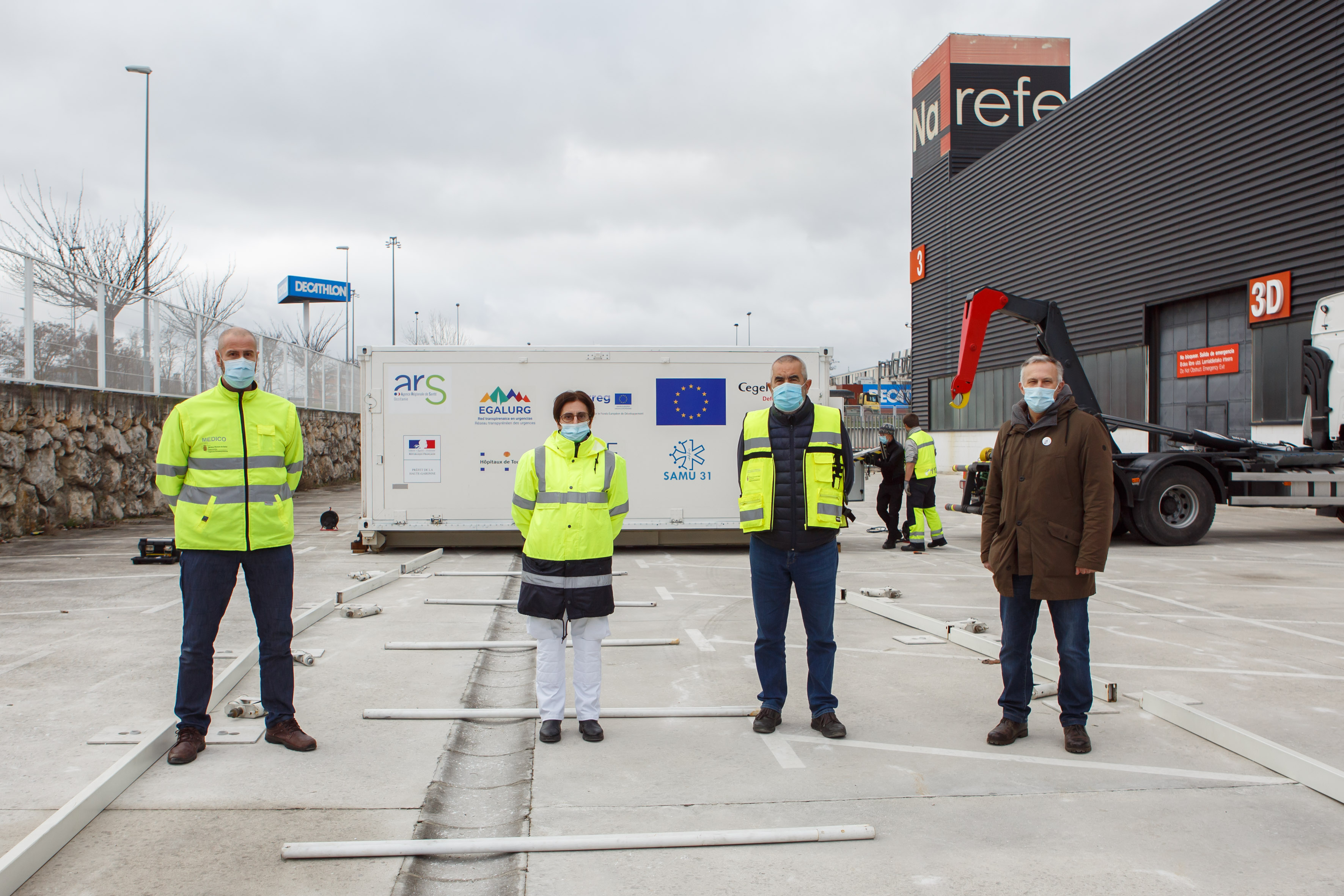 Este mediodía se ha instalado en el aparcamiento de REFENA de Pamplona / Iruña la unidad móvil UMPEO (Unidad Móvil Polivalente Europa Occitania) construida por el Complejo Hospitalario Universitario de Toulouse (CHUT) en el marco de la red de cooperación transfronteriza EGALURG, una iniciativa europea para mejorar la asistencia sanitaria de urgencias y catástrofes en espacio Pirineos.