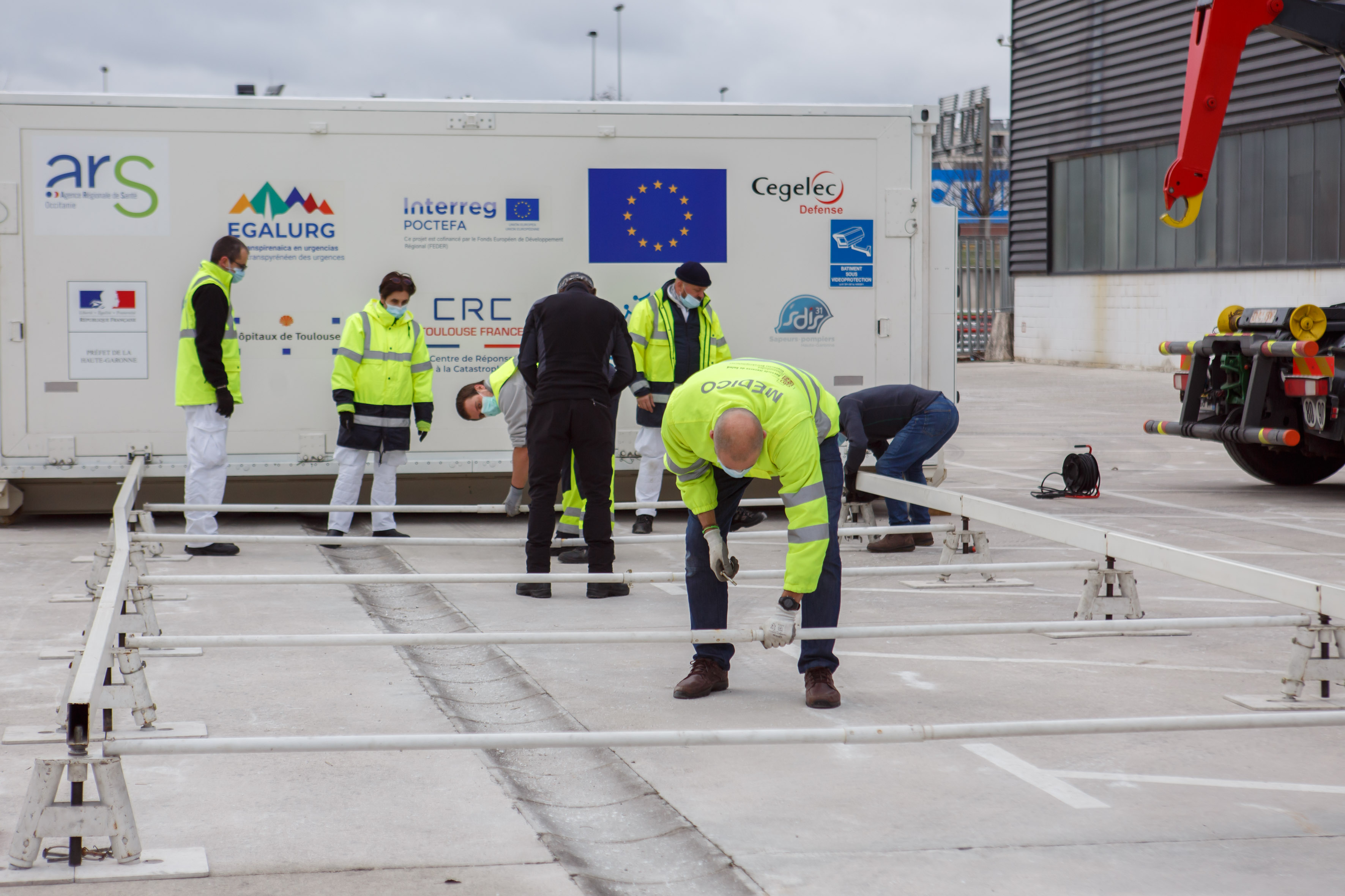 Para poder hacer uso de la unidad móvil – UMPEO (Unidad Móvil Polivalente Europa Occitania), un equipo de profesionales de la subdirección de Urgencias del SNS-O y de Navarrabiomed se trasladó el lunes y martes, 11 y 12 de enero, a Toulouse para recibir una formación técnica sobre el despliegue y el manejo de la instalación por parte del CHUT, entidad que lidera el proyecto EGALURG y quien se ha encargado de la construcción de esta unidad sanitaria móvil.