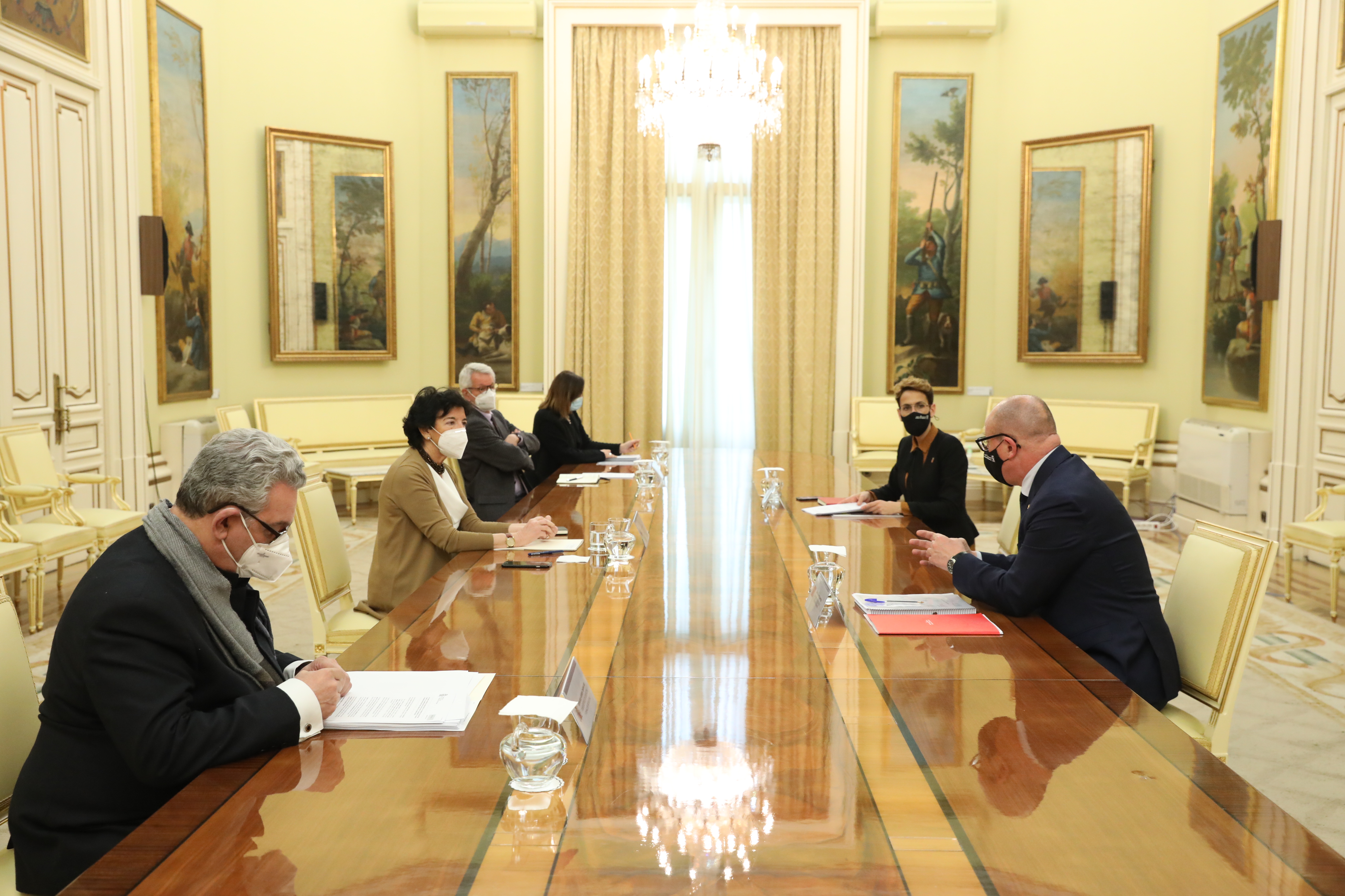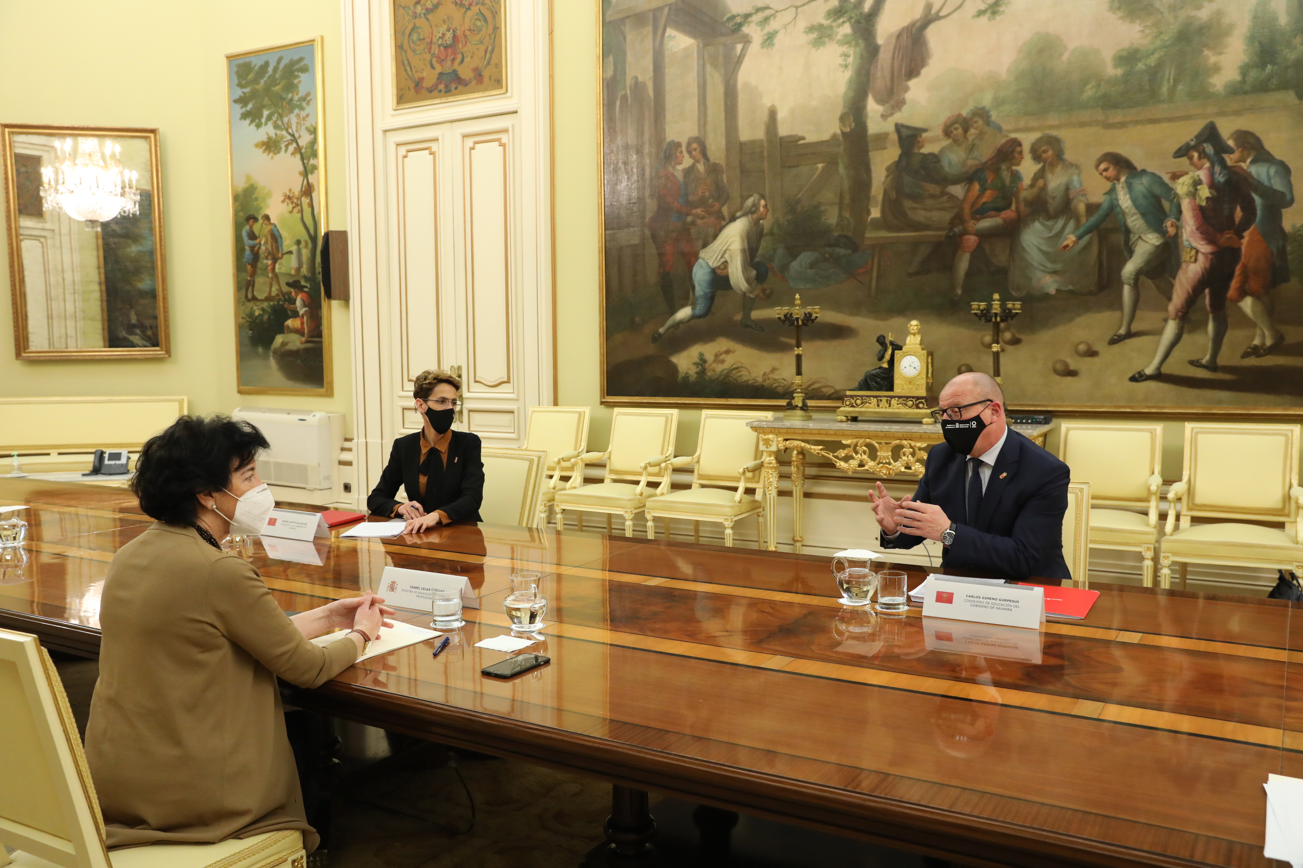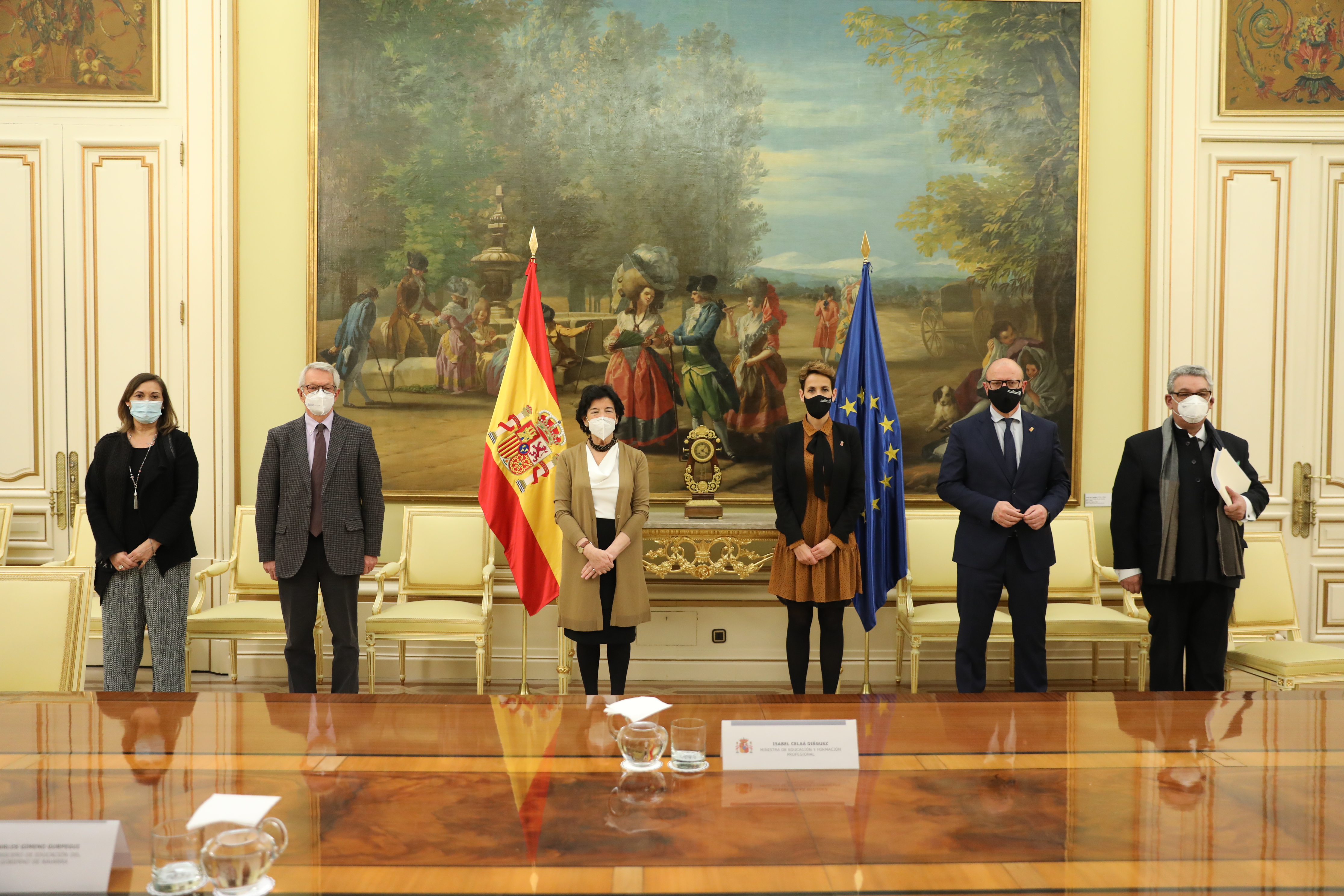 En el transcurso del encuentro, mantenido en la sede del ministerio, y en el que también han participado el secretario de Estado de Educación, Alejandro Tiana; la secretaria general de Formación Profesional, Clara Sanz, y el subsecretario de Asuntos Jurídicos del ministerio, Fernando Gurrea, la Presidenta Chivite y el consejero Gimeno han analizado con los responsables ministeriales el desarrollo del Plan de Recuperación, Transformación y Resiliencia (#PlanEspañaPuede) que impulsa el Gobierno de España.