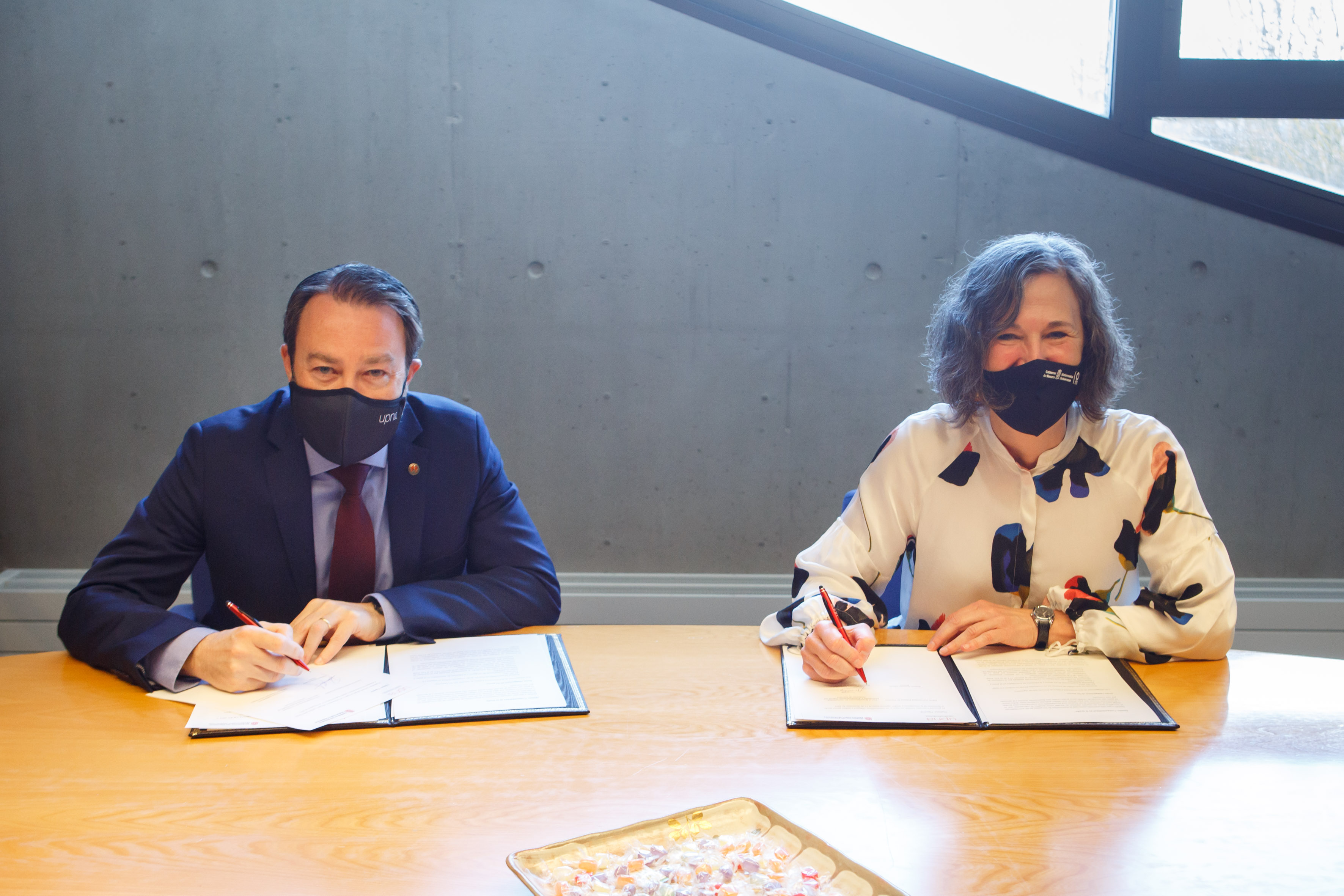 El rector de la Universidad Pública de Navarra, Ramón Gonzalo García, y la directora general de Universidad, Ana Burusco Juandeaburre, han renovado el convenio de colaboración para el fomento de las vocaciones STEM en las mujeres. En virtud de este acuerdo, y con el fin de seguir impulsando las vocaciones científico-técnicas en general y de las mujeres en particular, se incrementa de 25.000 a 44.000 euros la subvención de las actividades formativas previstas en el convenio. Al acto de la firma ha asistido también Gurutze Pérez Artieda, directora de la Cátedra Mujer, Ciencia y Tecnología de la UPNA.