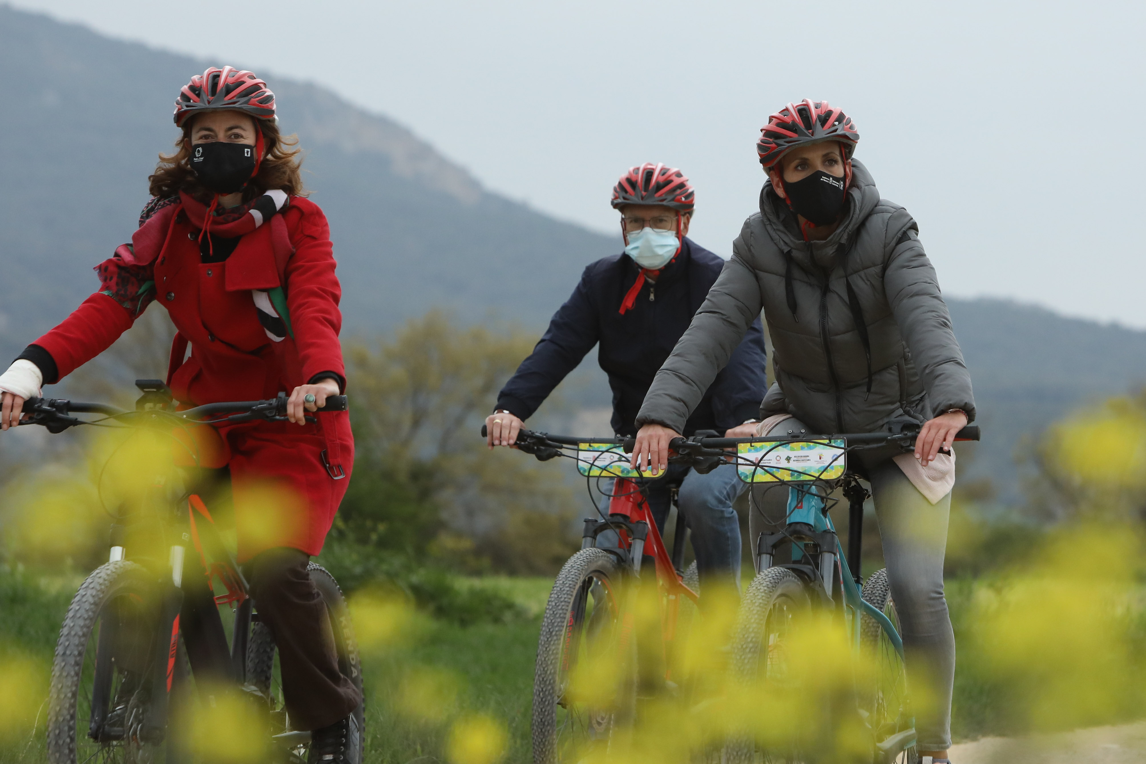 Acompañada por el consejero de Cohesión Territorial, Bernardo Ciriza; la directora general de Transportes, Berta Miranda; la alcaldesa de Metauten, Oihana Beraza; y el alcalde de Zúñiga, Pedro Mª Oteiza, la Presidenta Chivite ha recorrido en bicicleta una parte de la ruta ciclable que se ha construido en Metauten.