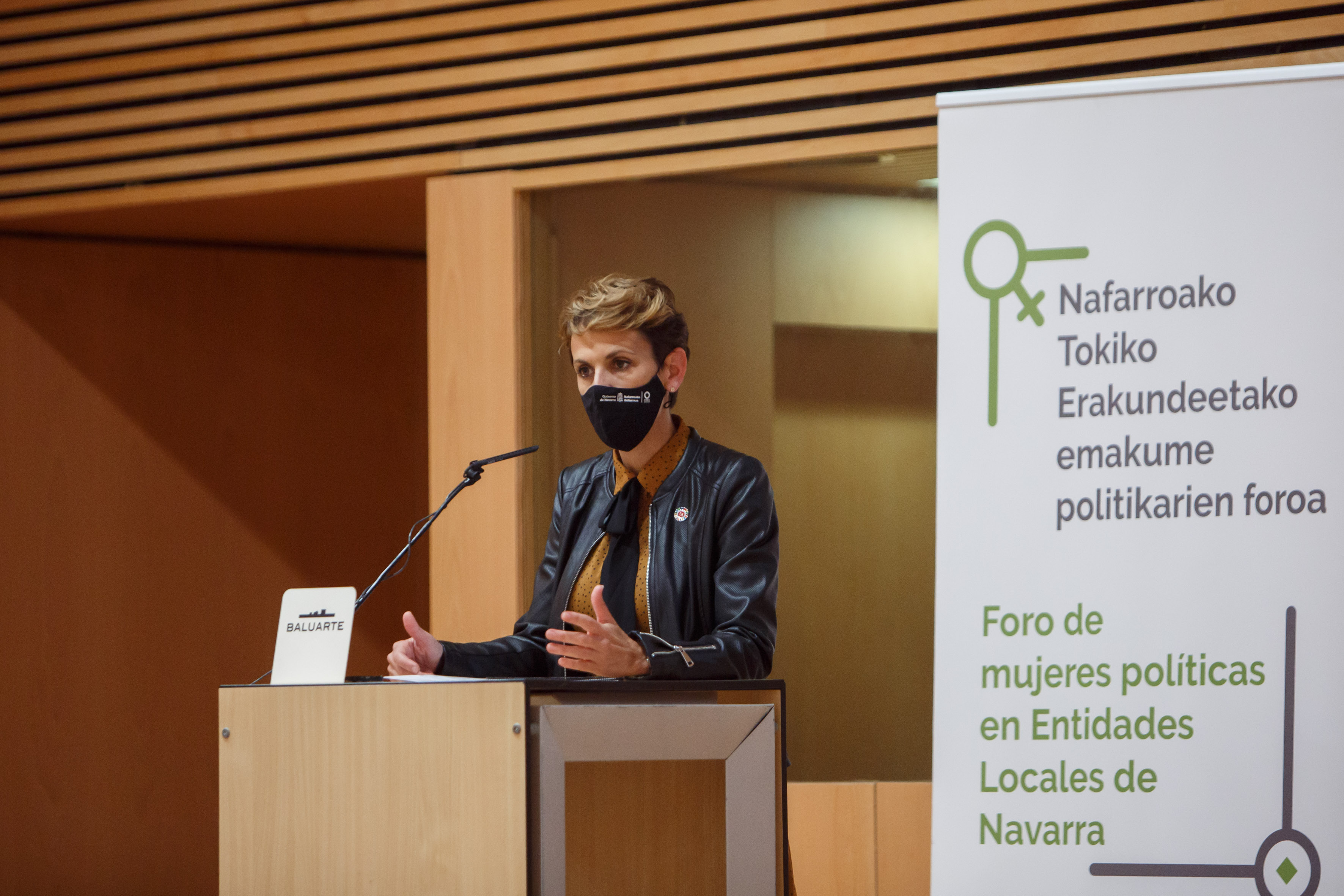 La Presidenta de Navarra, María Chivite, ha animado hoy a las mujeres alcaldesas y concejalas de la Comunidad Foral a seguir trabajando por la igualdad en todos los ámbitos, desde la política hasta la educación, pasando por la violencia contra las mujeres, la brecha salarial y las desigualdades sociales. Así lo ha hecho ante medio centenar de asistentes a la apertura de la tercera edición del Foro de Mujeres Políticas de Entidades Locales, celebrado en Baluarte.