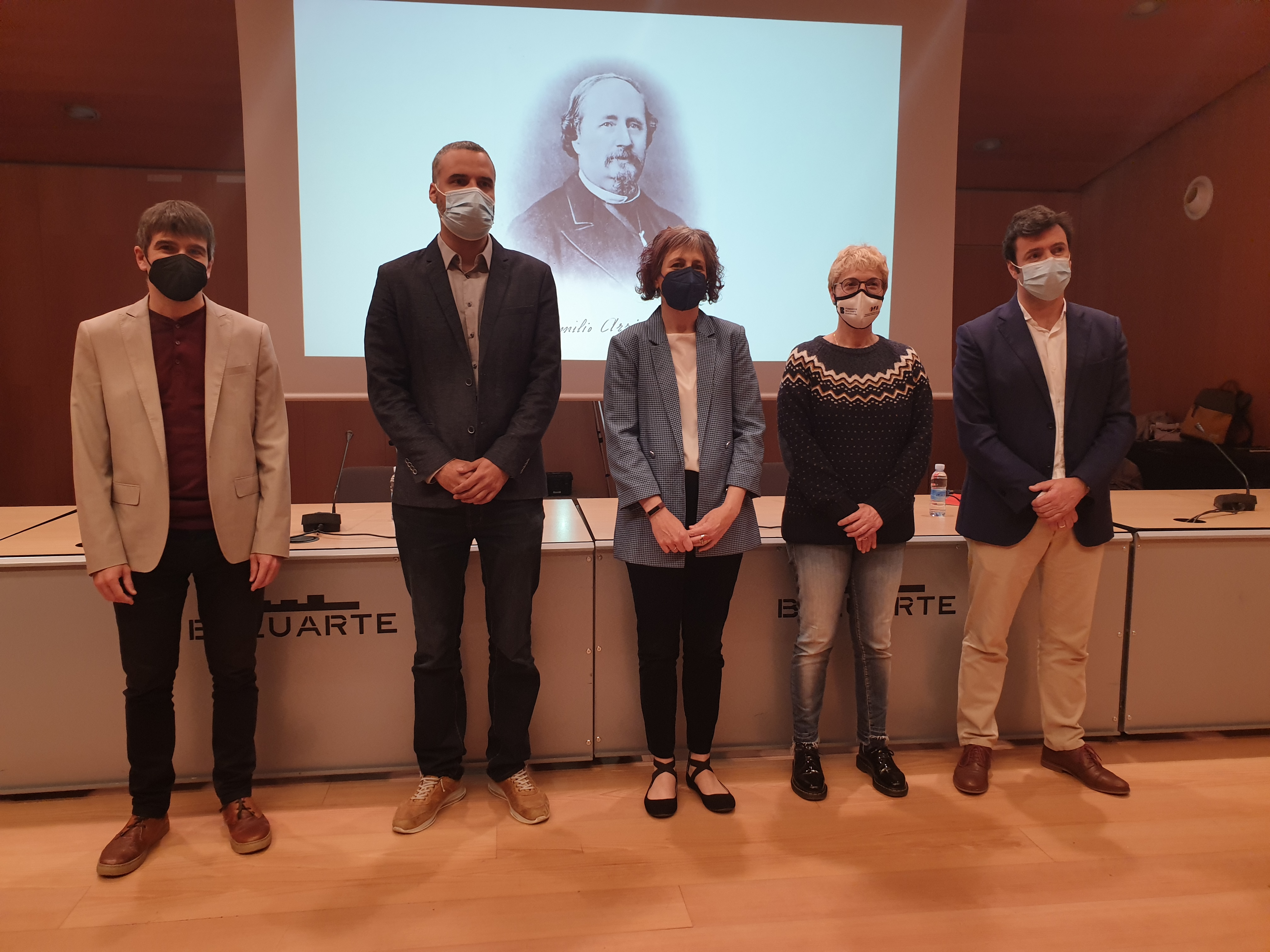 La consejera de Cultura y Deporte, Rebeca Esnaola, el alcalde de Puente la Reina – Gares, Oihan Mendo, la directora gerente de la Fundación Baluarte, María Antonia Rodríguez, y el maestro y director de orquesta Oliver Díaz han presentado el calendario de actividades elaborado para celebrar el bicentenario del nacimiento del músico.