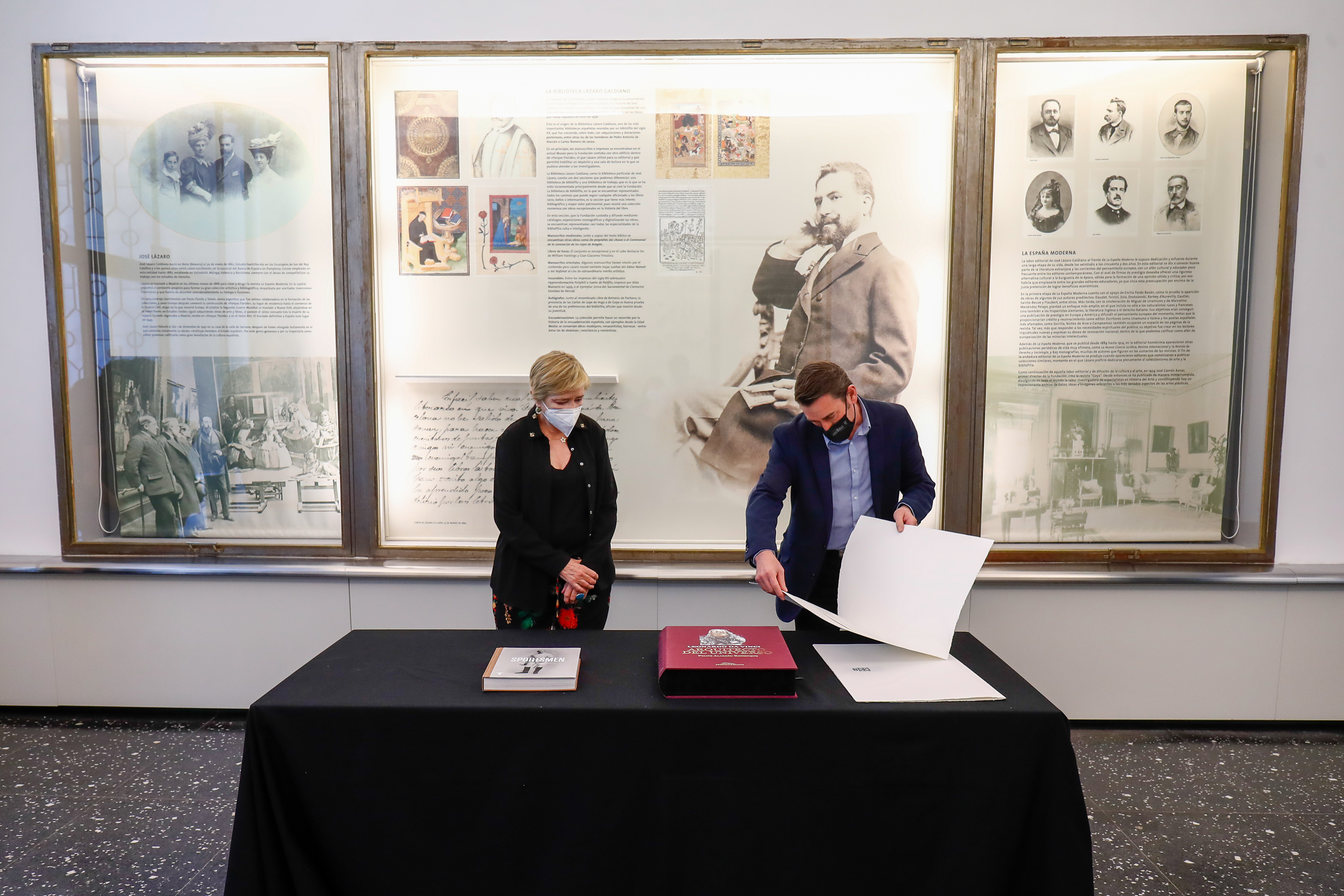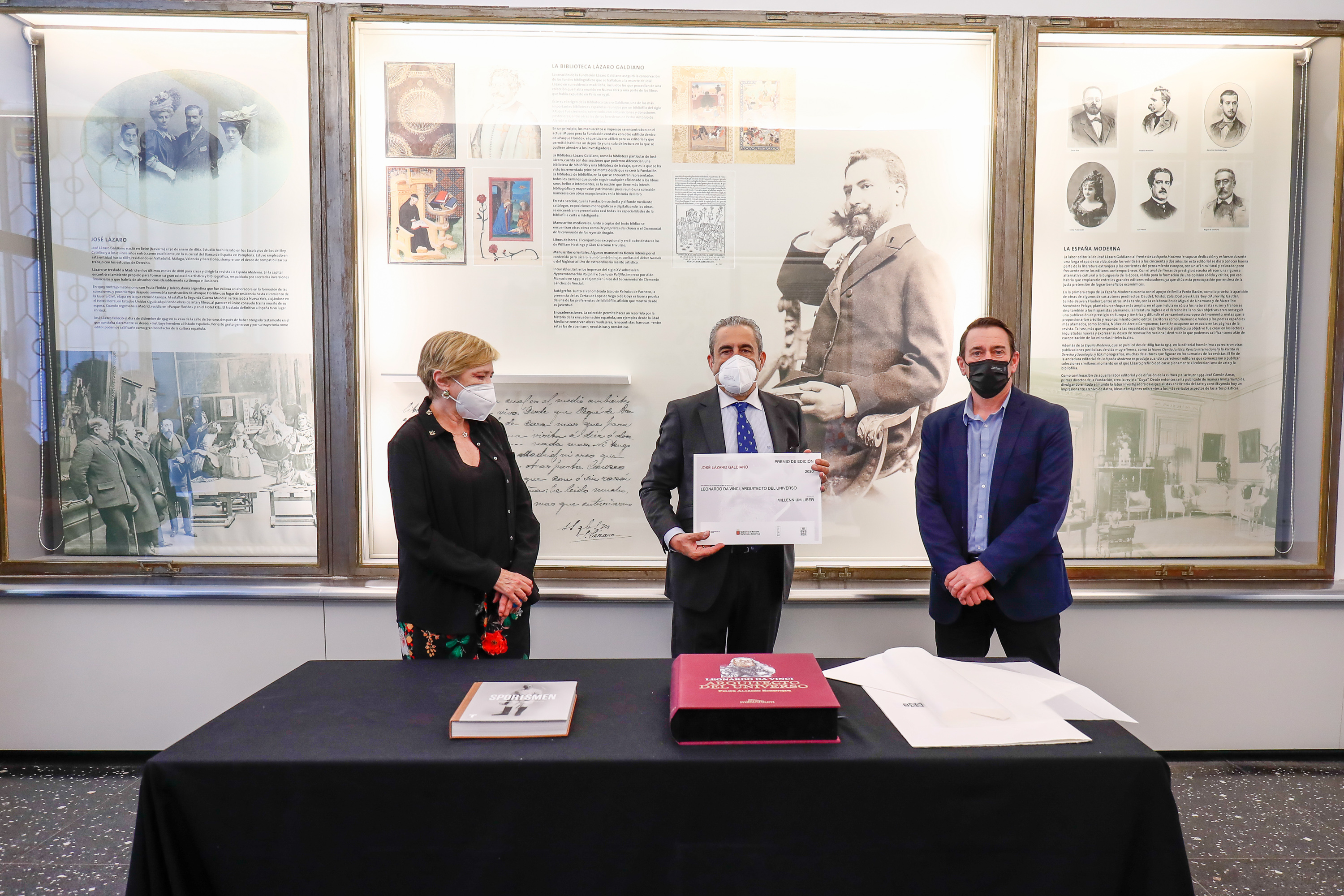 El director general de Comunicación y Relaciones Institucionales, Pablo Roncal, ha entregado este jueves en Madrid el Premio de Edición José Lázaro Galdiano 2020 a la obra “Sportsmen, pioneros del deporte en España 1869-1939”, de la editorial Turner; y a “Leonardo da Vinci, arquitecto del universo”, en la modalidad de libros bibliófilos, impresa por la editorial Millennium Liber. Ambas ediciones han recibido sendos premios de 3.000 euros.