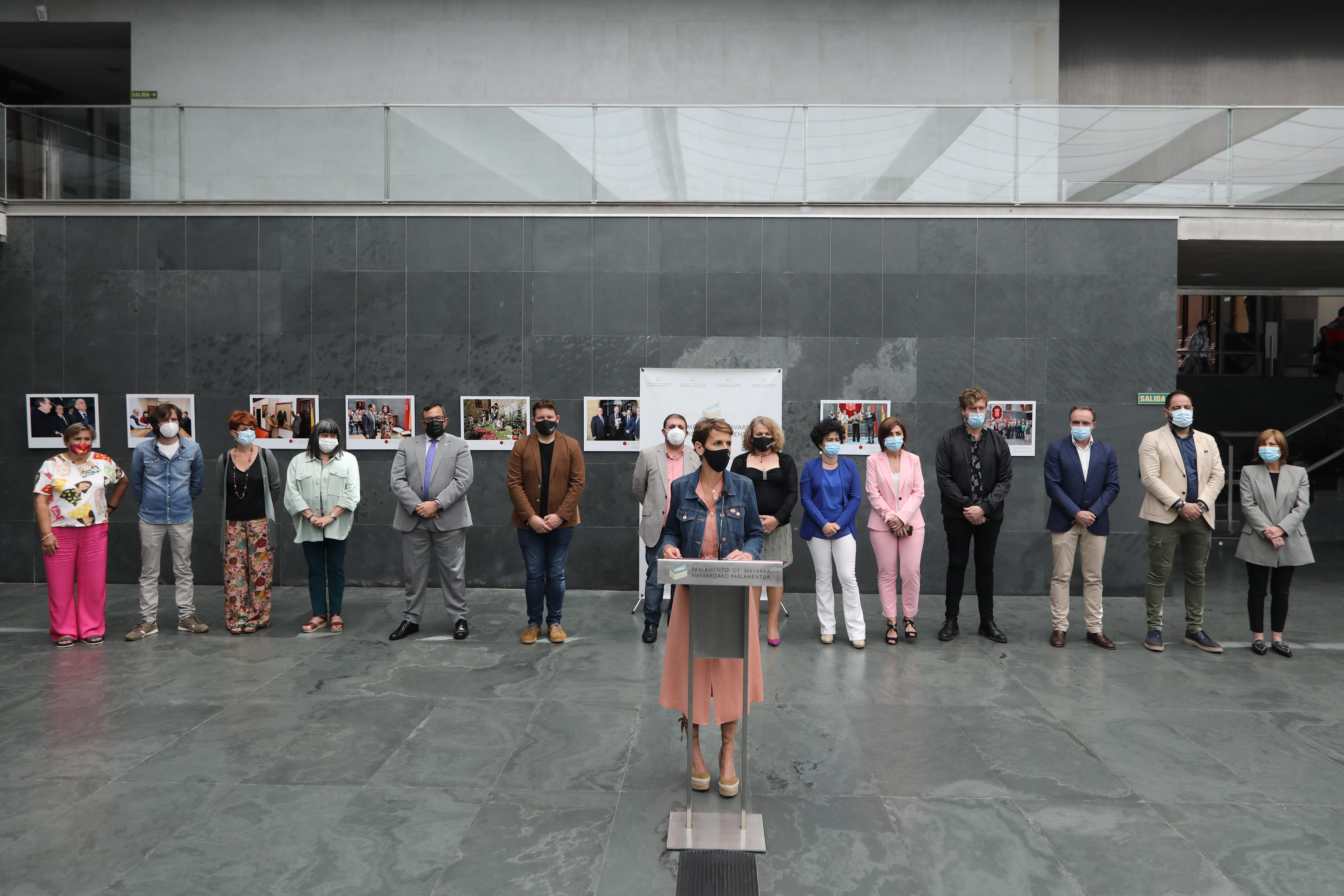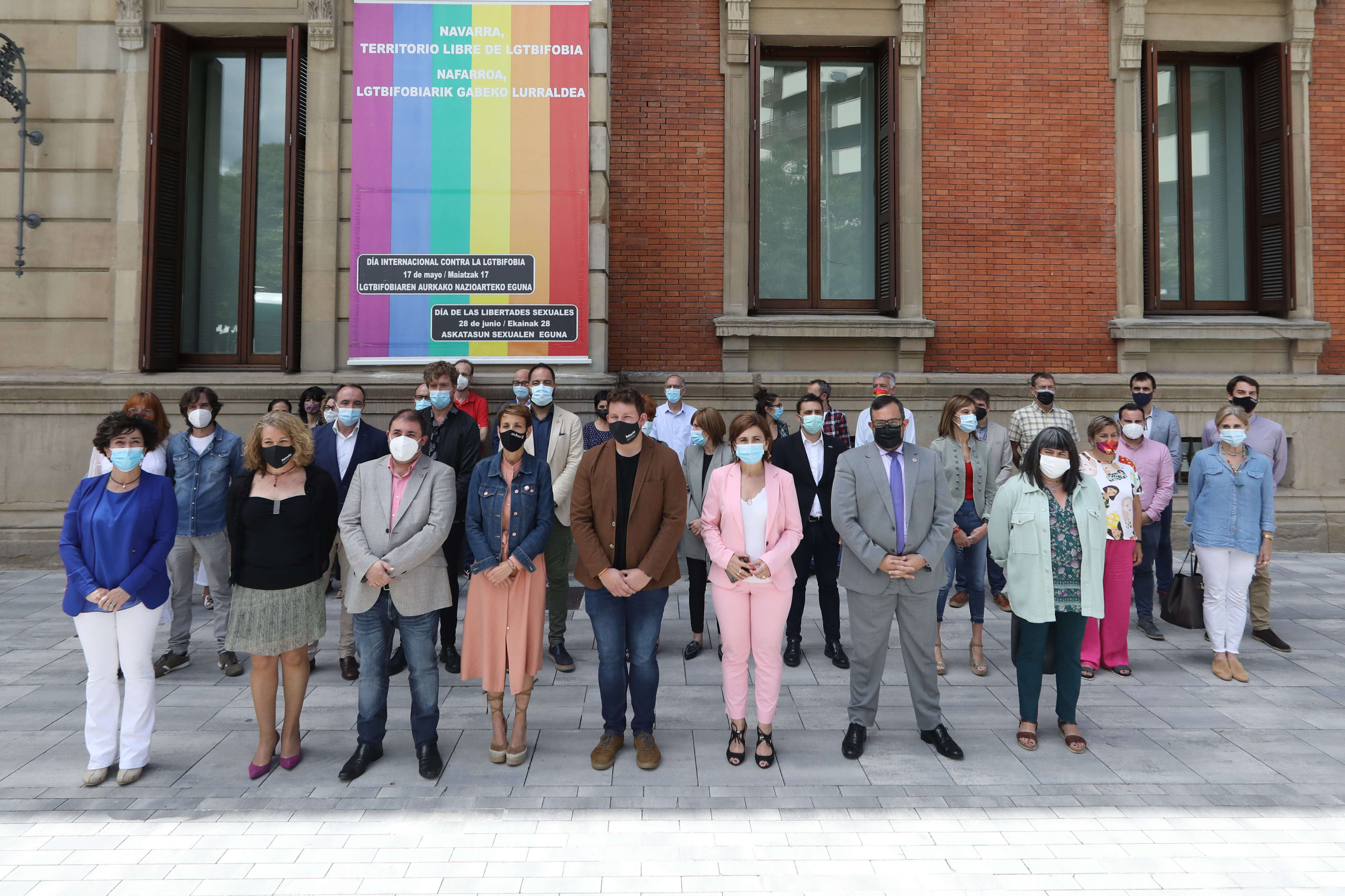 El acto, reducido por las limitaciones del COVID-19, ha contado con una veintena de asistentes, entre representantes del Gobierno foral, de los grupos parlamentarios y de las asociaciones del colectivo LGTBI+. La Presidenta Chivite ha estado acompañada por el presidente del Parlamento de Navarra, Unai Hualde, el vicepresidente Javier Remírez y la directora gerente del Instituto Navarro para la Igualdad/Nafarroako Berdintasunerako Institutua, Eva Istúriz.