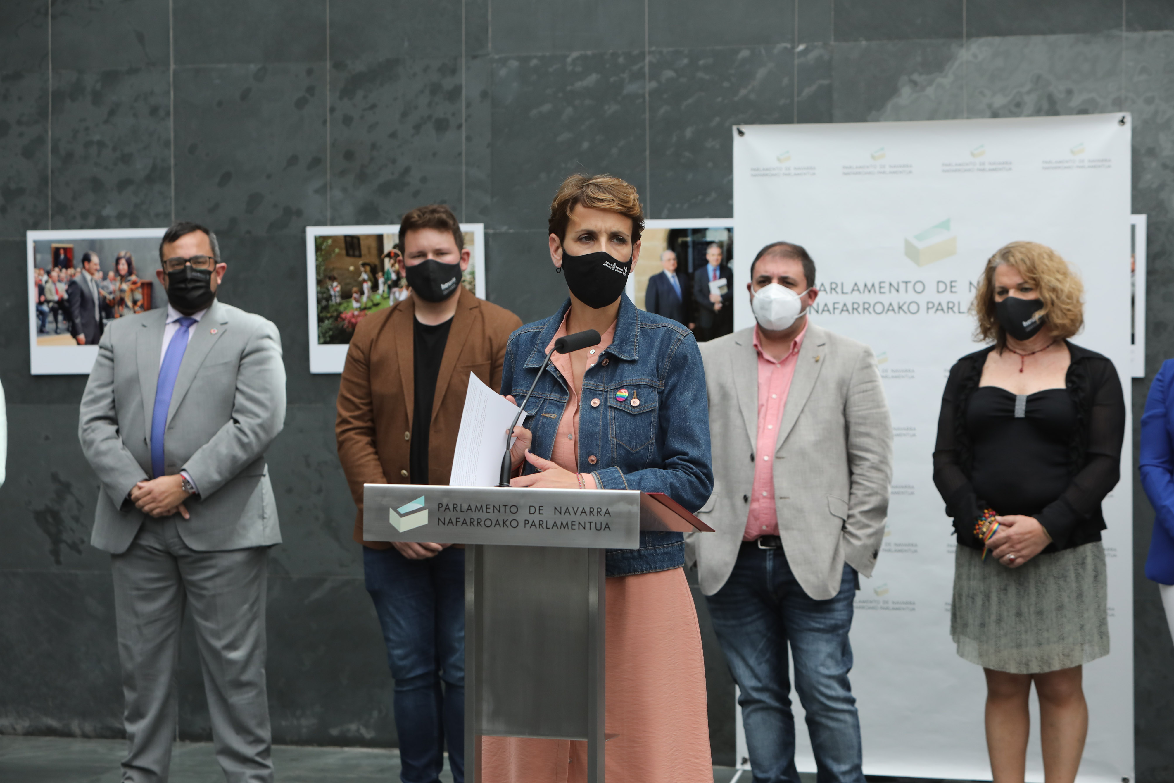 La Presidenta de Navarra, María Chivite, ha reafirmado hoy “el compromiso del Gobierno foral para seguir trabajando en el impulso de políticas públicas que consigan materializar el reconocimiento legal de los derechos humanos de las personas LGTBI+”. Así lo ha afirmado en el acto en conmemoración del Día Internacional del Orgullo LGTBI+, celebrado de forma conjunta en el Parlamento de Navarra, junto con varias asociaciones representantes de este colectivo.