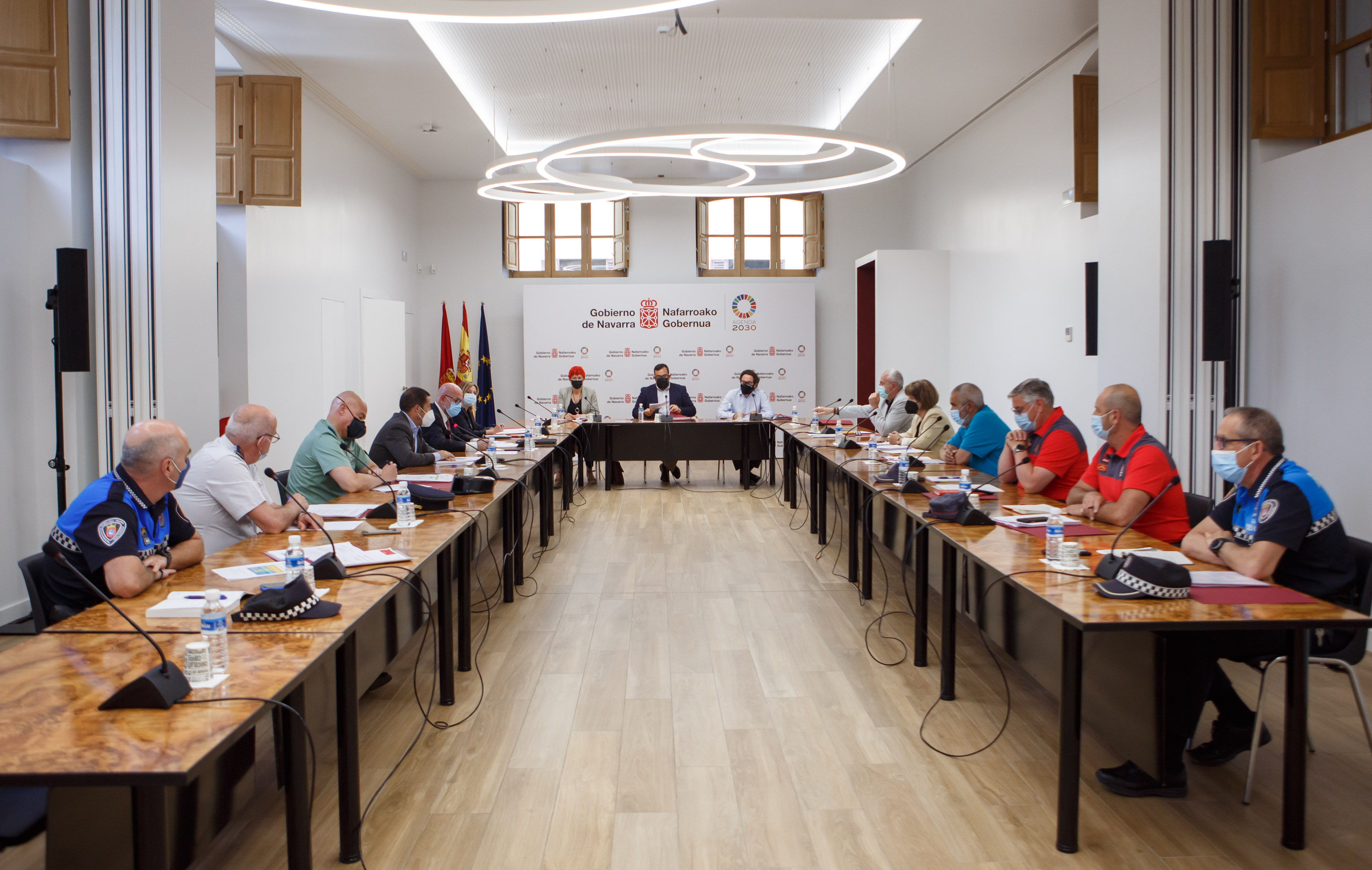 Han participado, también, en la reunión el delegado del Gobierno en Navarra, José Luis Arasti; el presidente de la Federación Navarra de Municipios y Concejos, Juan Carlos Castillo; la directora general de Interior, Amparo López; el director general de Salud, Carlos Artundo; el subdirector de Urgencias Extrahospitalarias, Kiko Betelu;  la directora del Servicio de Régimen Jurídico de Interior, Pilar Zapico; el jefe de la Policía Foral, Juan Carlos Zapico; el jefe superior de la Policía Nacional en Navarra, José María Borja; el jefe de la Guardia Civil en Navarra, José Santiago Martín; el jefe de la Policía Municipal Pamplona, Javier Goya; el jefe de la Policía Municipal Tudela, Juan Cruz Ruiz;  el Comisario Principal del Área de Seguridad Ciudadana de la Policía Foral, Ángel Fernandez Goñi y el secretario general de la Delegación del Gobierno en Navarra, Valentín Velasco.
