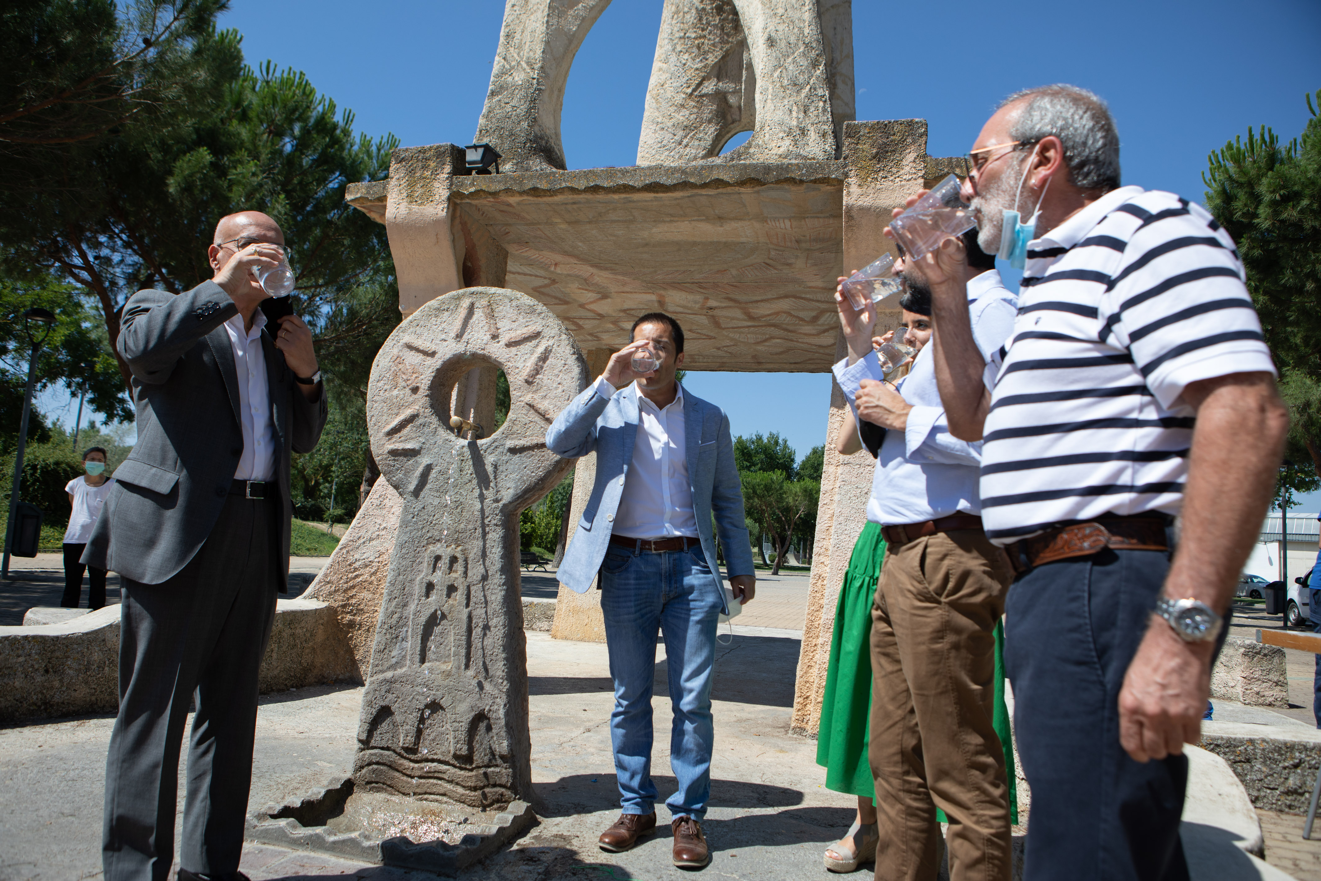 El acto, celebrado junto a la fuente del Paseo del Rio Arga, ha contado con la presencia del Consejero de Cohesión Territorial, Bernardo Ciriza, el director general de Administración Local y Despoblación, Jesús María Rodriguez, el subdirector de INTIA, Joaquin Puig, el Presidente de la Mancomunidad de Mairaga, Jorge Bacaicoa, así como del alcalde de Peralta, Juan Carlos Castillo y la alcaldesa de Falces, Sara Fernández.