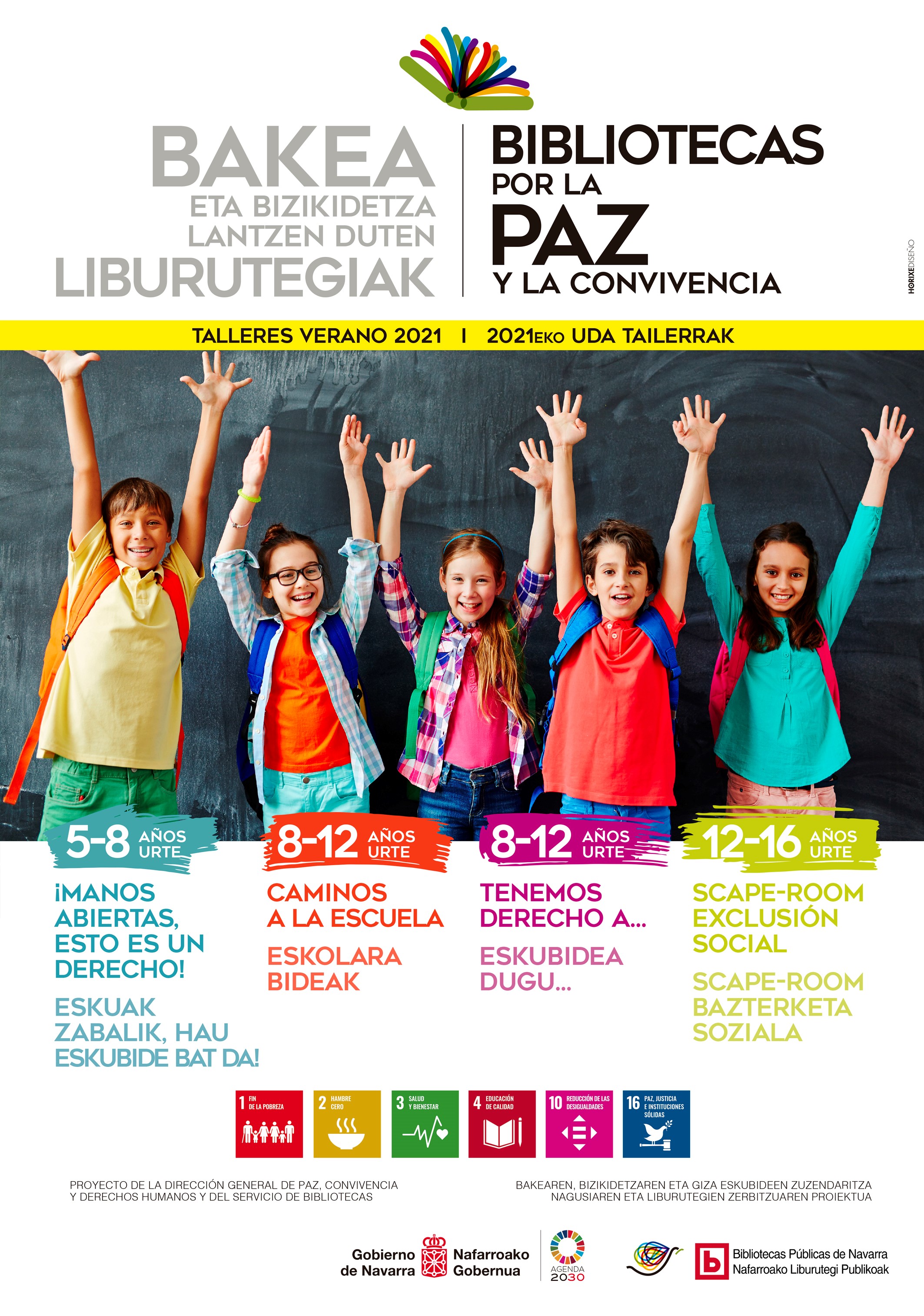 El Gobierno de Navarra a través del programa “Bibliotecas por la paz y la convivencia”, en el que cooperan los servicios de Bibliotecas del Departamento de Cultura y Deporte y el de Convivencia y Derechos Humanos del Departamento de Relaciones Ciudadanas, ha puesto de nuevo a disposición de las bibliotecas públicas de Navarra cuatro talleres presenciales para niños, niñas y adolescentes de entre 5 y 16 años, que se llevarán a cabo tanto en euskera como en castellano.