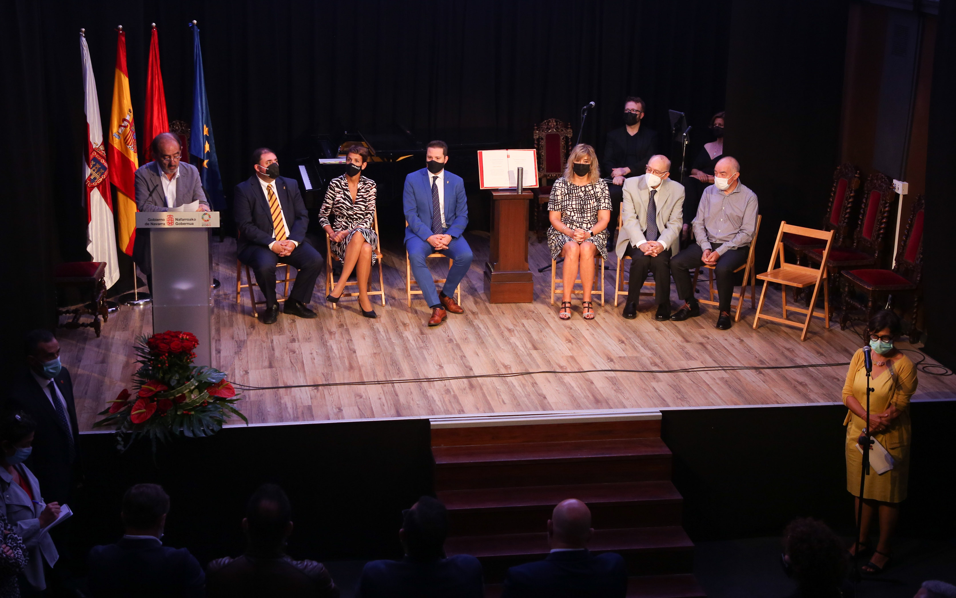 El acto, que ha dado comienzo con el Himno de Navarra, Marcha para la entrada de un Reyno, ha contado con varias piezas musicales como Romanza de María de la zarzuela "El juramento" de Joaquín Gaztambide; Oh celeste dulzura, meditación religiosa sobre texto de Adelardo López de Ayala y dedicada a Julián Gayarre de Emilio Arrieta; y Lascia ch'io pianga de la ópera "Rinaldo” de Georg Friederich Händel. Todas ellas han sido interpretadas por la soprano tudelana Raquel Fernández, acompañada al teclado por Rinaldo Zohk y por Iñigo Remírez a la trompeta.