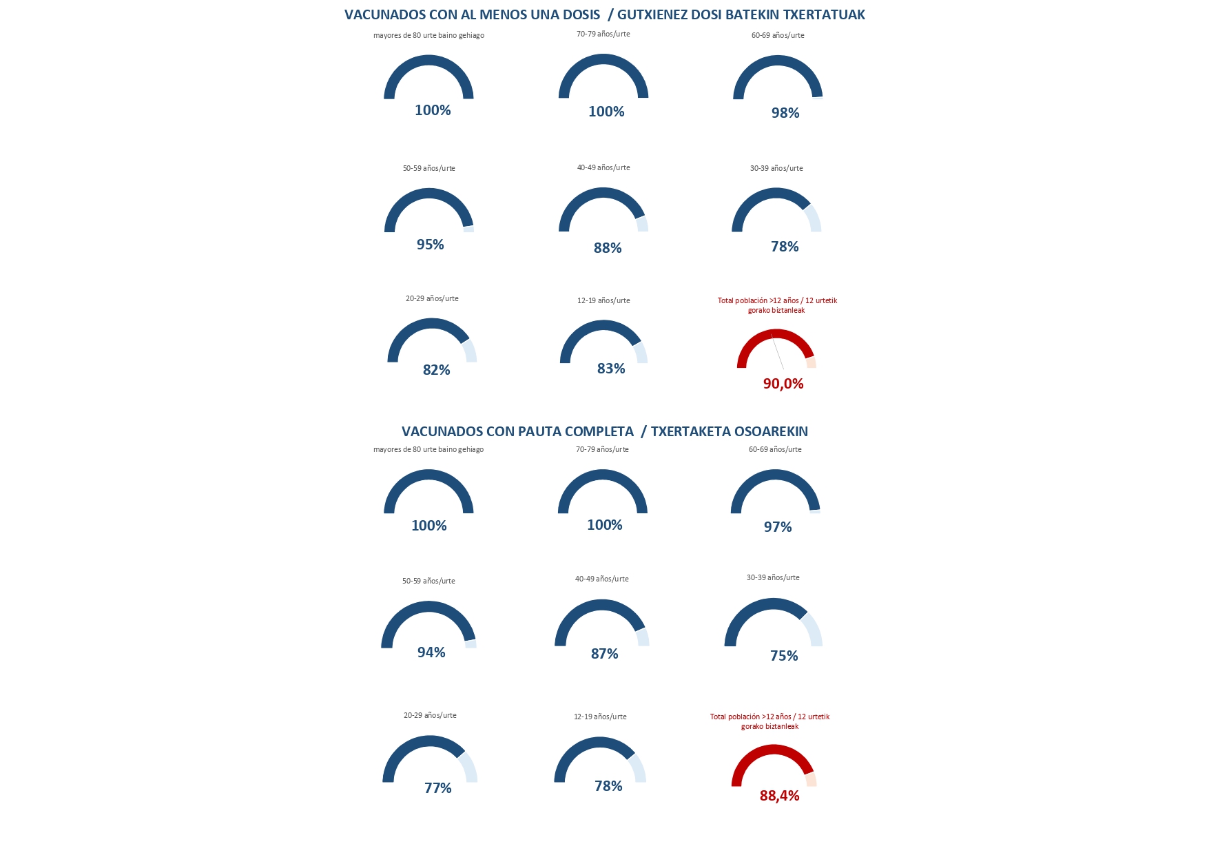 Las personas que han completado su vacunación hasta la fecha son 514.160 personas (el 88,4% de la población vacunable, a partir de 12 años, y el 77,8% de la total). Además, ha recibido al menos una dosis el 90% de la población vacunable y el 79,1% de la total, 523.052 personas.