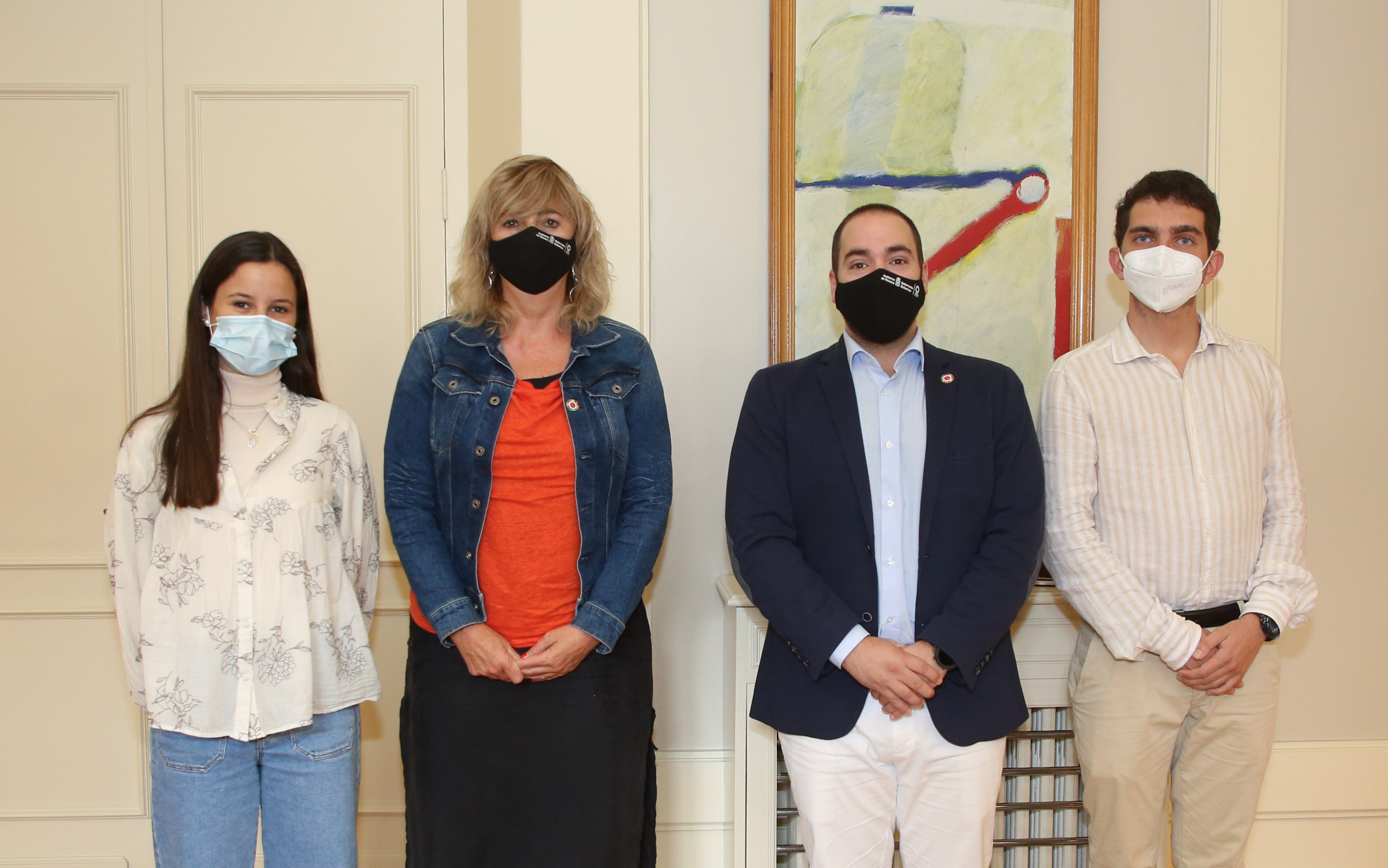 La consejera de Relaciones Ciudadanas del Gobierno de Navarra, Ana Ollo, acompañada por el director general de Acción Exterior, Sergio Pérez, ha recibido a una representación de la asociación Equipo Europa Navarra, compuesta por José Javier Ramírez, delegado de Comunicación y Alba Viera, delegada de Acción.
