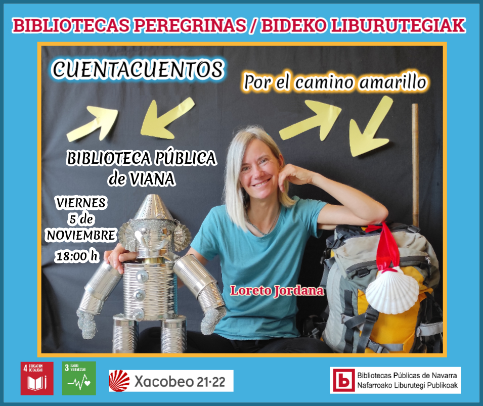 La segunda propuesta es la sesión de cuentos “Por el camino amarillo”, donde el cuento “El maravilloso mago de Oz”, del escritor estadounidense L. Frank Baum, se mezcla con el Camino de Santiago y su camino de flechas amarillas. La actividad comenzó en Etxabakoitz el 8 de octubre, y podrá disfrutarse en Burlada el 9 de noviembre a las 18:00 horas; en Estella-Lizarra el 10 de noviembre a las 18:30 horas; y en Viana el 16 de noviembre a las 18:00 horas.