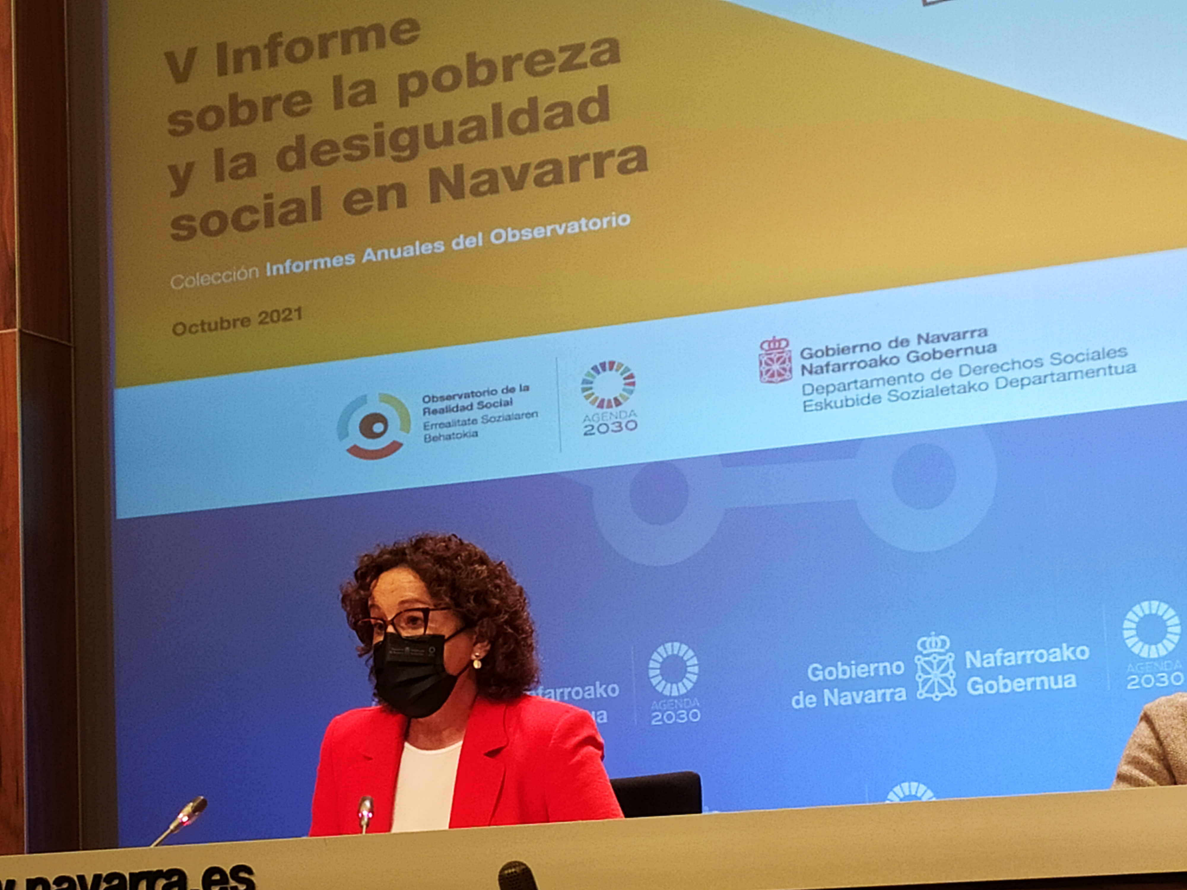 Así lo refleja el V Informe sobe pobreza y desigualdad social en Navarra presentado esta mañana por la consejera de Derechos Sociales, Mª Carmen Maeztu, junto con el director general del Observatorio de la Realidad Social, Luis Campos y el jefe de sección de dicho Observatorio, Antidio Martínez de Lizarrondo. Este informe se realiza cada año y se presenta en los días previos a la conmemoración el 17 de octubre, con motivo del Día Internacional contra la pobreza.