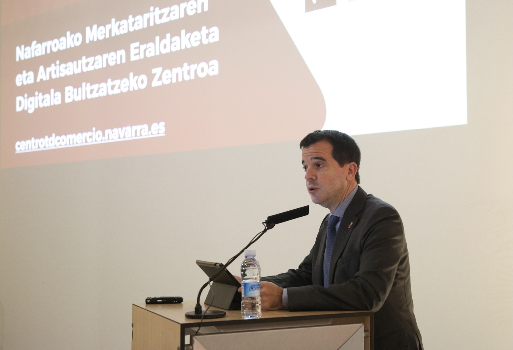 El consejero de Desarrollo Económico, Mikel Irujo, ha presentado, esta mañana, en Baluarte, el Centro de Impulso de Transformación Digital del Comercio y la Artesanía, un proyecto que pretende ser una herramienta que favorezca la digitalización del sector del comercio minorista y artesano de Navarra con el fin de aumentar su capacidad competitiva y de innovación.