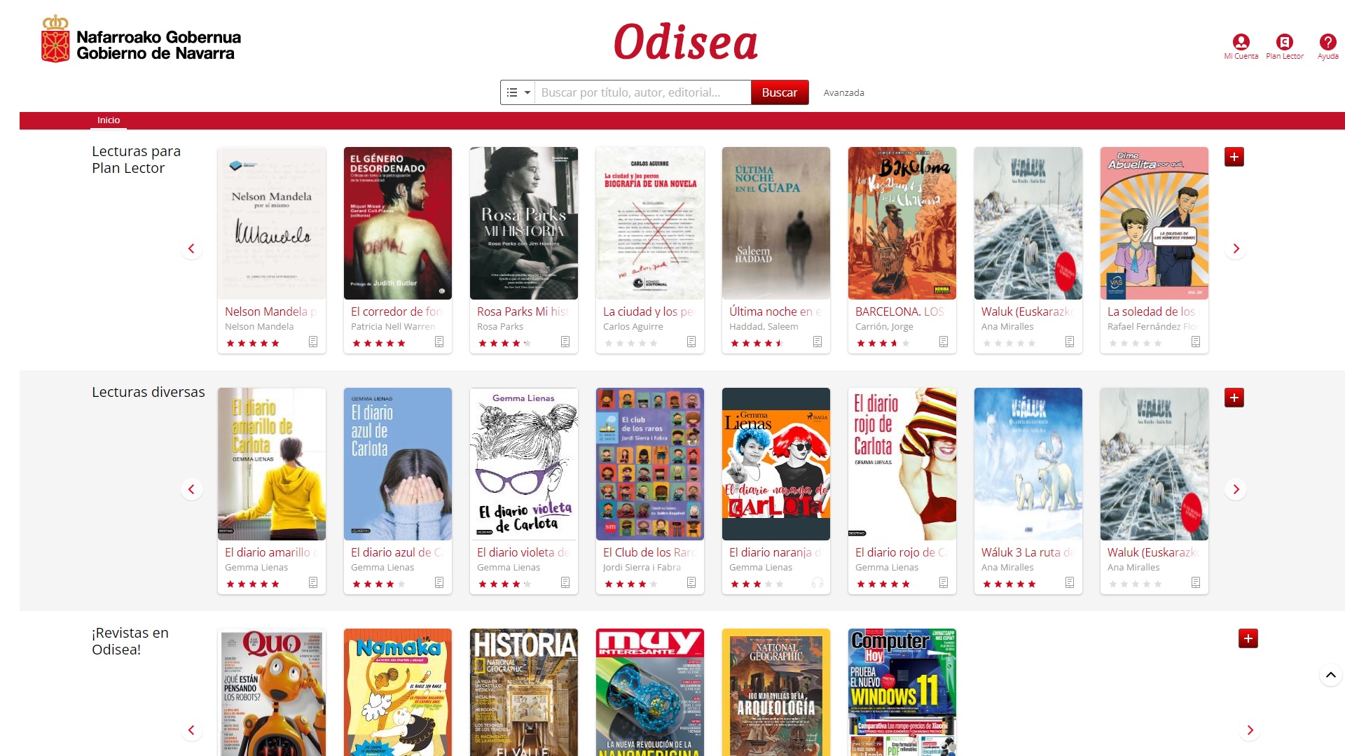 A partir del presente curso 2021/2022, el departamento de Educación ha ampliado la cobertura del servicio de biblioteca digital escolar ‘Odisea’, incluyendo a los centros concertados, cuyo profesorado y alumnado podrá, ahora, acceder a sus servicios. La biblioteca digital ‘Odisea’ consiste en una plataforma web de préstamo de contenido digital a la que tienen acceso todos los centros educativos públicos y ahora concertados de la Comunidad foral.