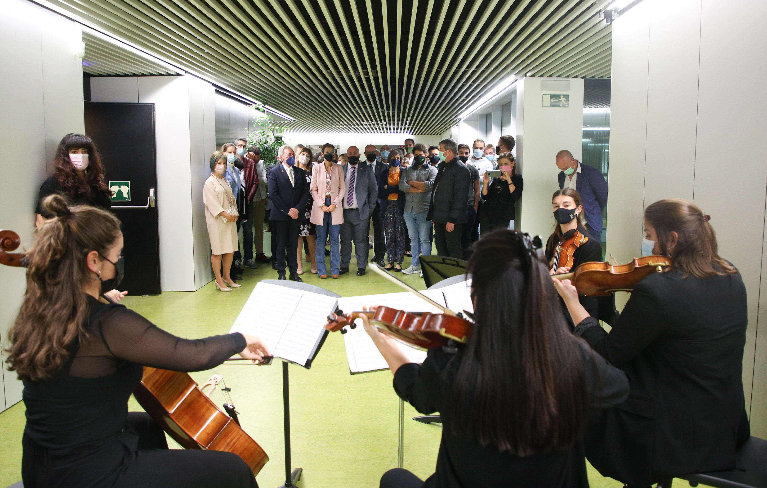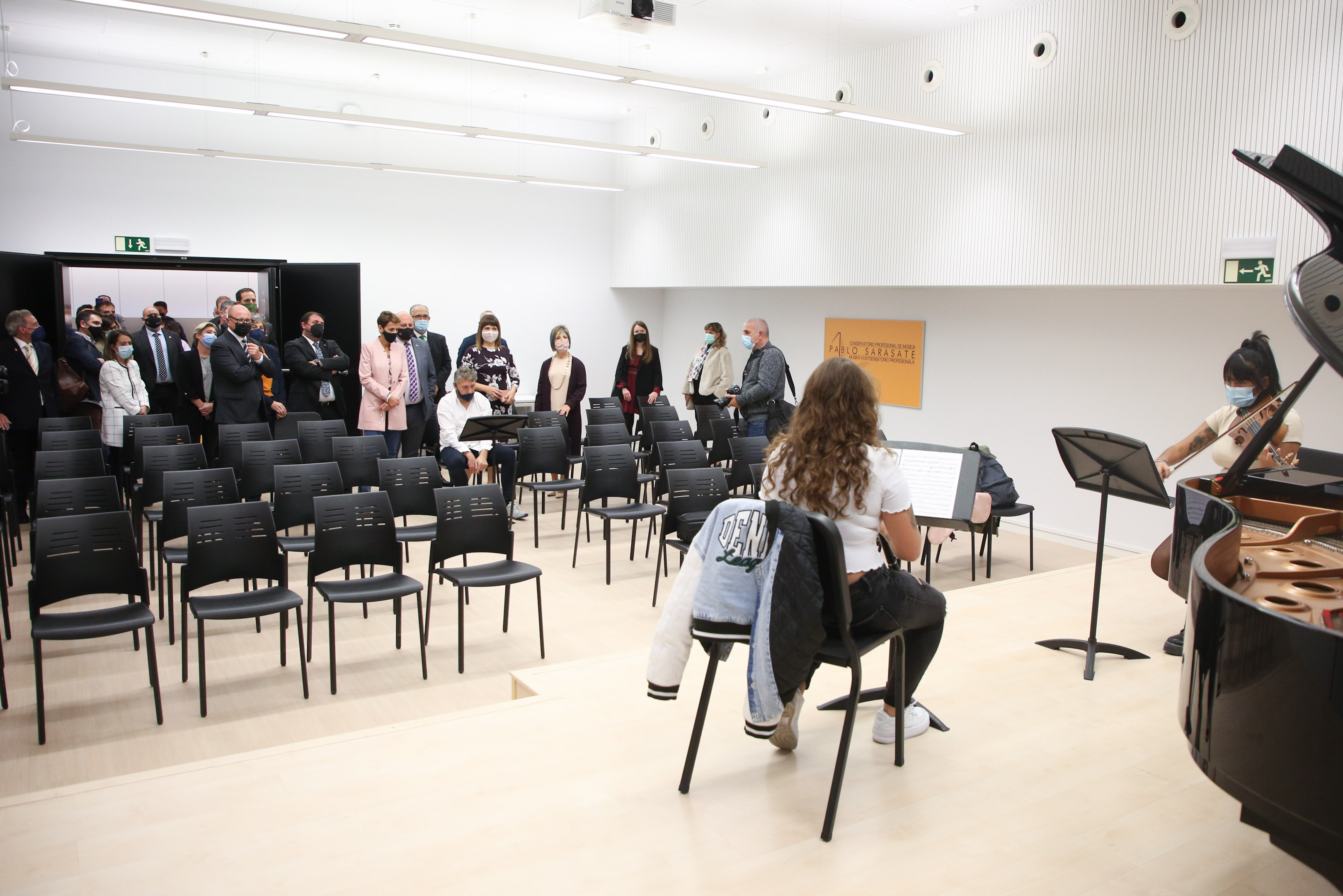 Previo al acto institucional, las autoridades han visitado el Aula Emilio Arrieta en el Conservatorio Profesional “Pablo Sarasate”, en la que ha habido un ensayo. Asimismo, han podido conocer el proyecto JAULAB, donde han tenido una experiencia sonora. JAULAB es un laboratorio donde el músico o compositor ocupa la zona central y puede crear sonidos que se reproducirán de forma inmersiva, debido a las características de la propia instalación.