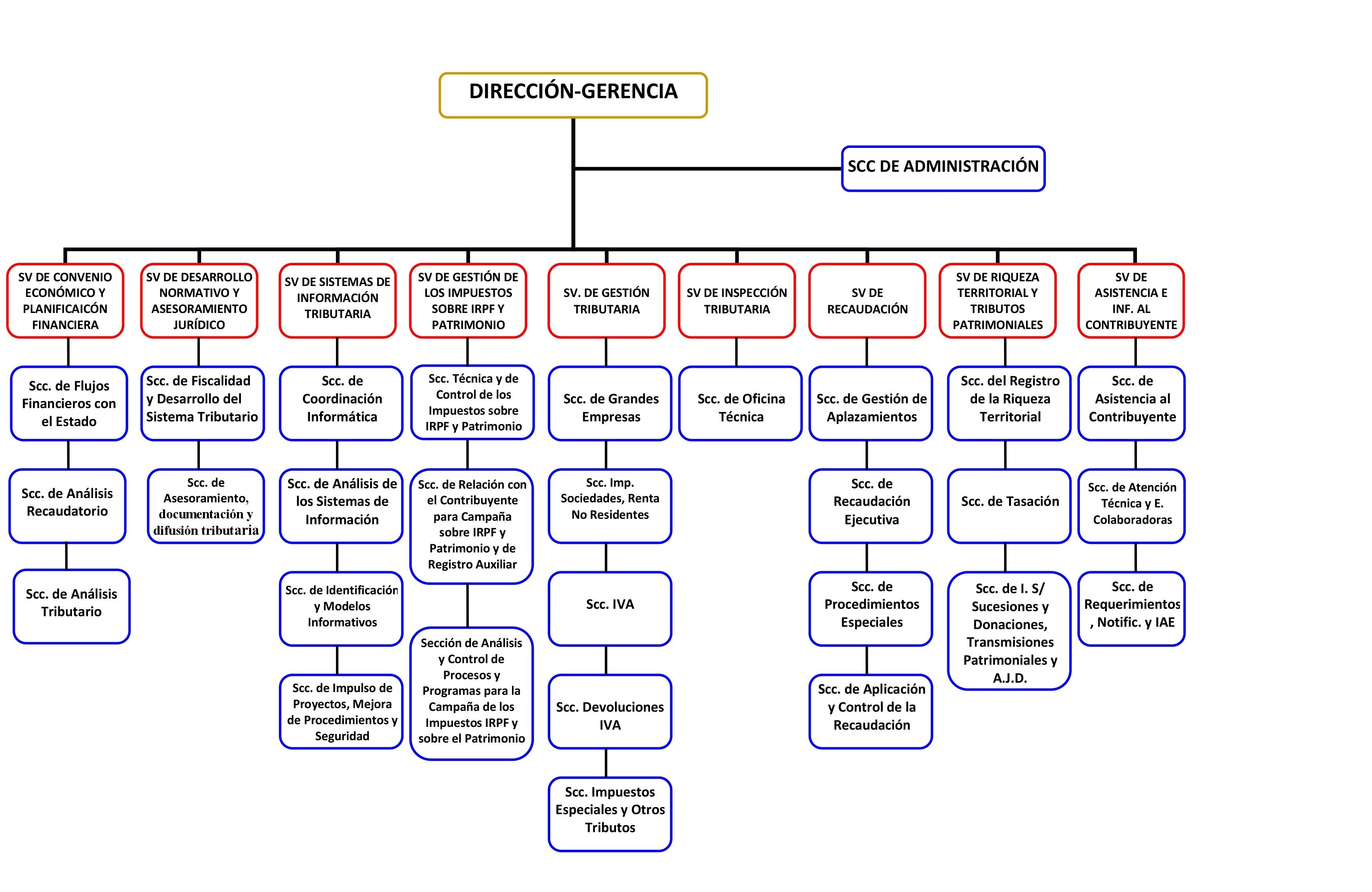 En 2018 el organigrama que depende de la Gerencia se compone de 9 Servicios y 1 Sección que dependen directamente de ella. Por su parte, los Servicios se estructuran en las secciones de la forma que se describe en el siguiente gráfico.