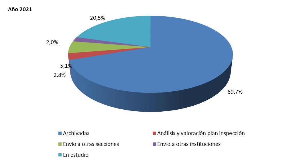 Grafico nº 37. Denuncias tramitadas según tipo de tramitación - memoria 2021
