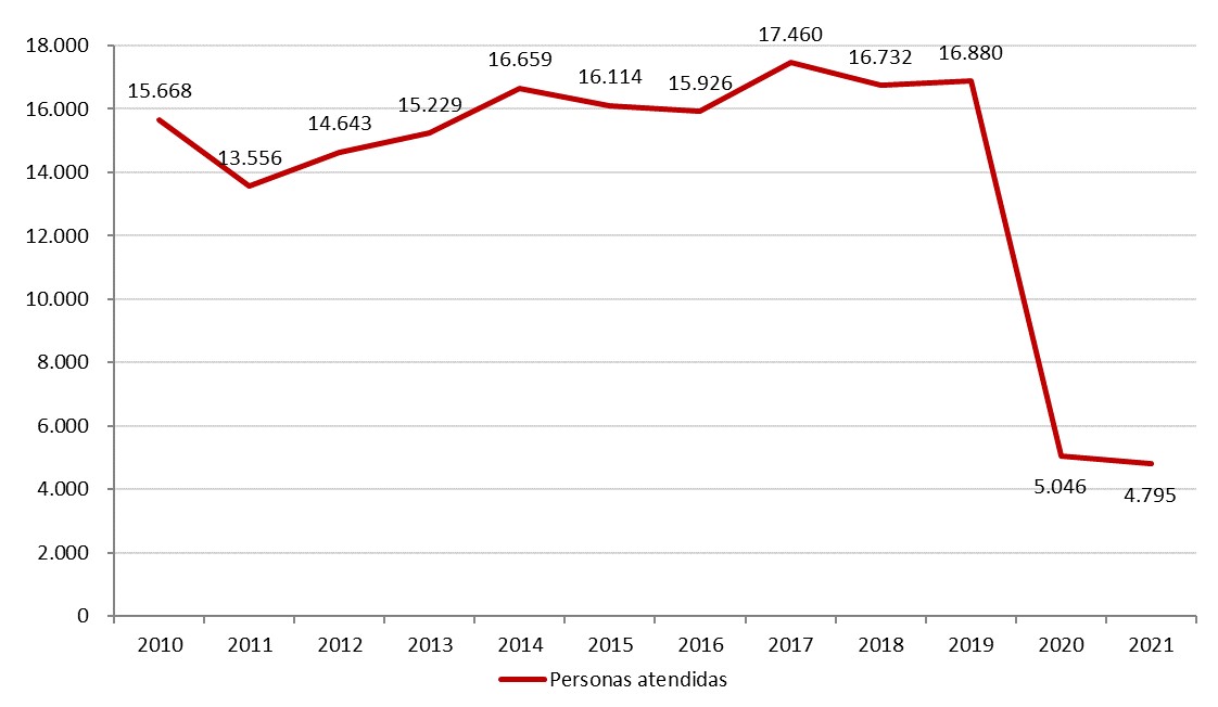 Gráfico nº 21. Atención presencial administrativa. Evolución temporal personas atendidas