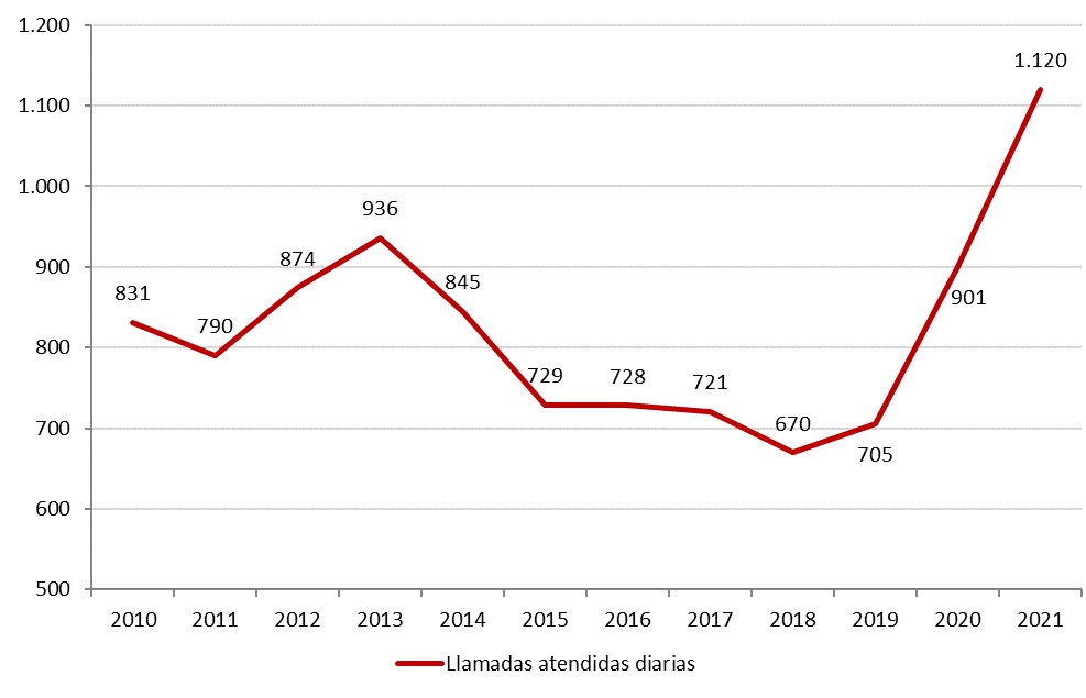 Gráfico nº 25. Evolución temporal llamadas telefónicas atendidas diarias - memoria 2021