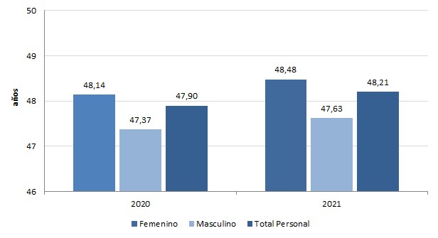 Gráfico nº 5. Promedio de edad del personal de HFN según género - memoria 2021