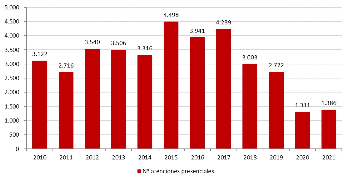 Gráfico nº 21. Atención presencial administrativa. Evolución temporal personas atendidas
