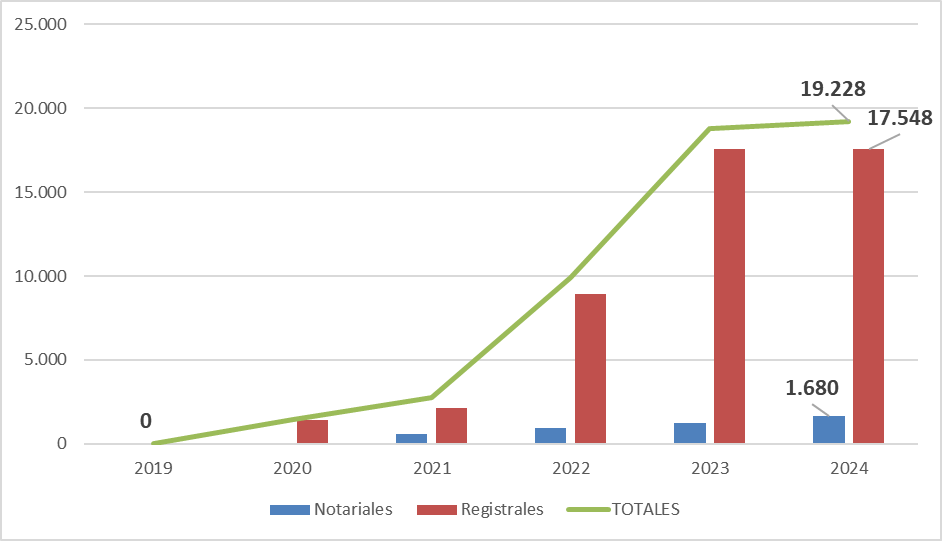 Gráfico nº 56. Evolución del número de comunicaciones de notarios y registradores de la propiedad al Registro de la Riqueza Territorial.