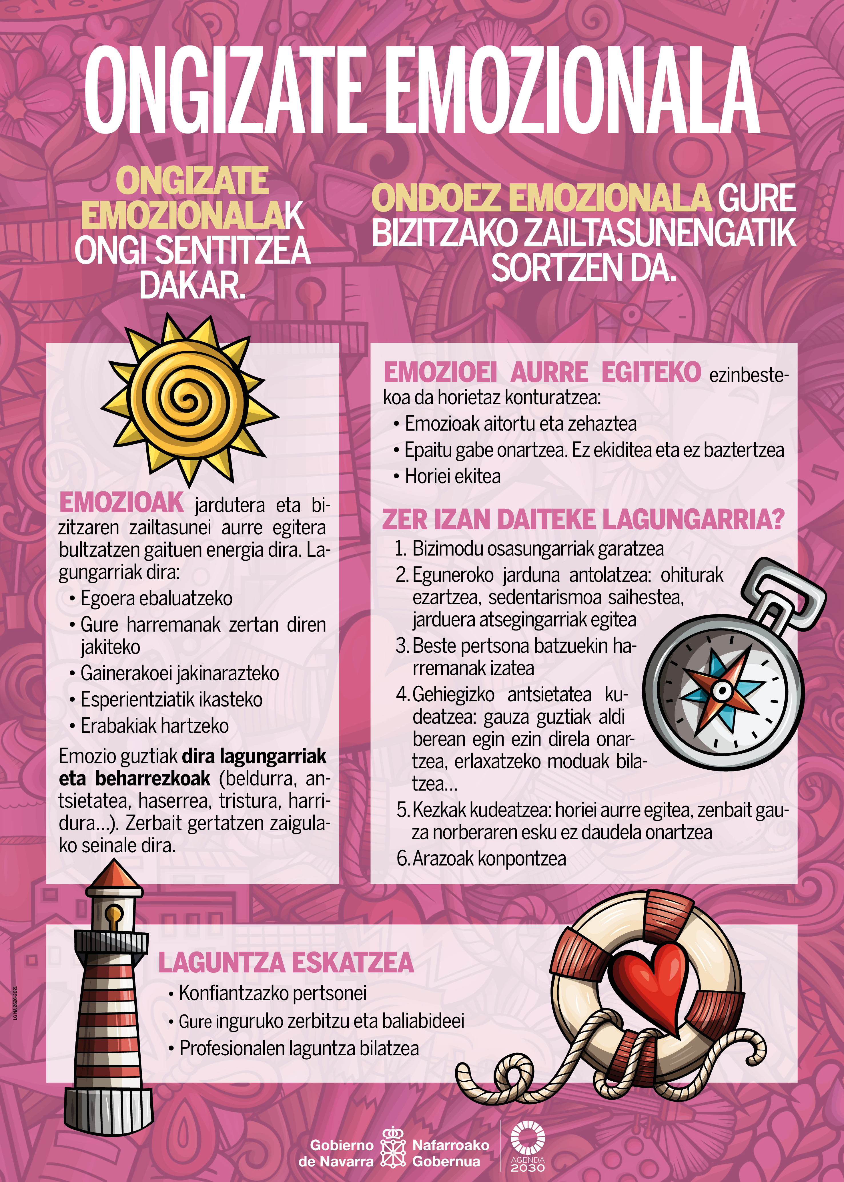 Nafarroako Gobernuak ongizate emozionalari buruzko triptiko bat egin du, emozioak identifikatzea, onartzea eta horiei heltzea aholkatzen duena