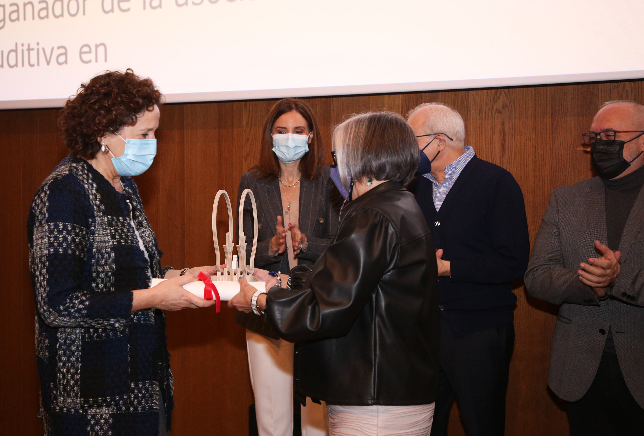 Carmen Maeztu Eskubide Sozialetako kontseilariak, Nafarroako Gizarte Zerbitzuetako Gizarte Berrikuntzaren II. Saria eman die astearte honetan EUNATE Elkarteko ordezkariei, entzumen-protesiak dituzten pertsonentzako errealitate birtualaren proiektua dela eta.