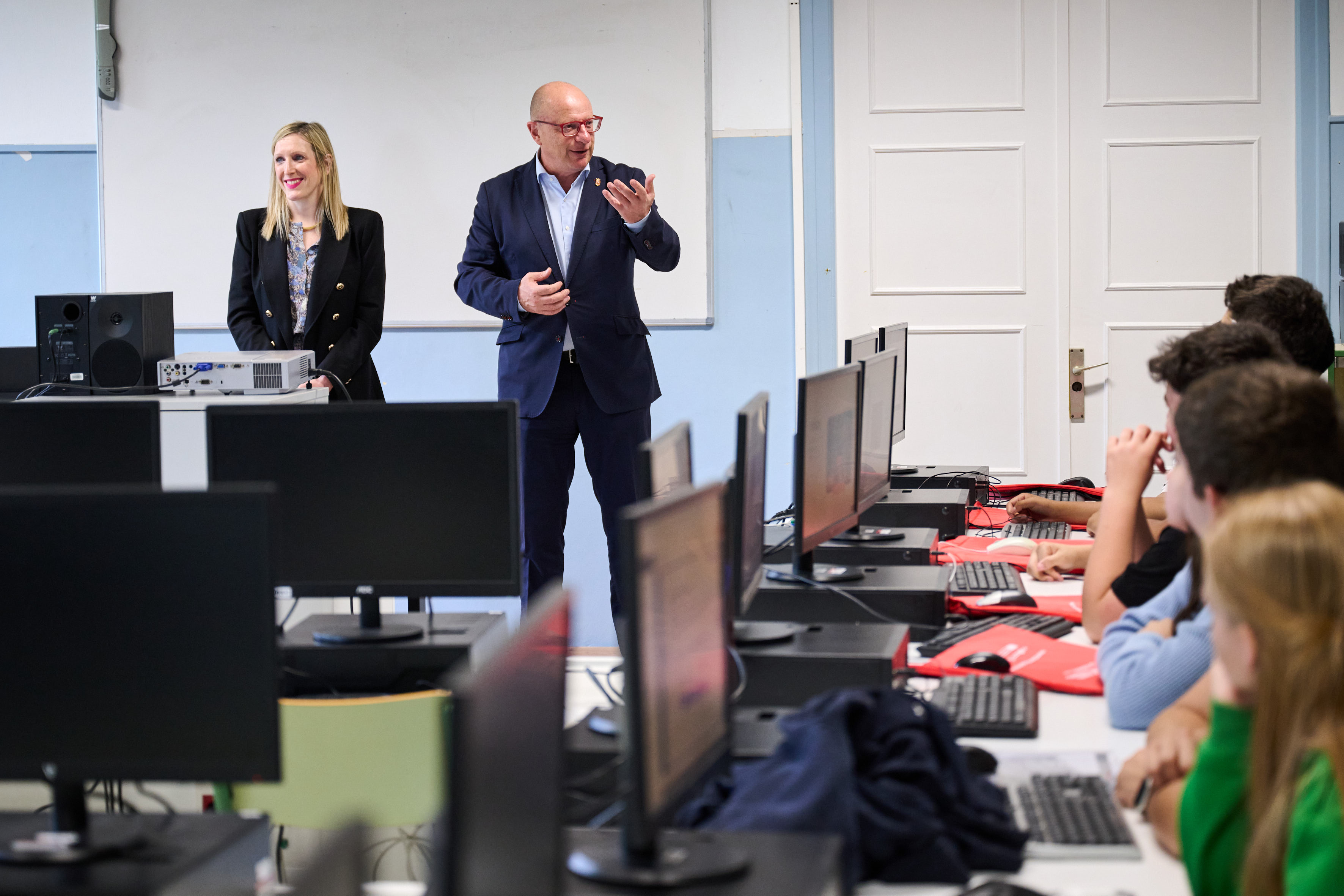 Kontseilariaren bisitaren bidez, bi Departamentuek hezkuntzarekin eta eraldaketa digitalarekin duten konpromisoa azpimarratu da, Nafarroako ikasleak mundu digitalaren erronkei aurre egiteko ondo ekipatuta egotea nahi baitute.
