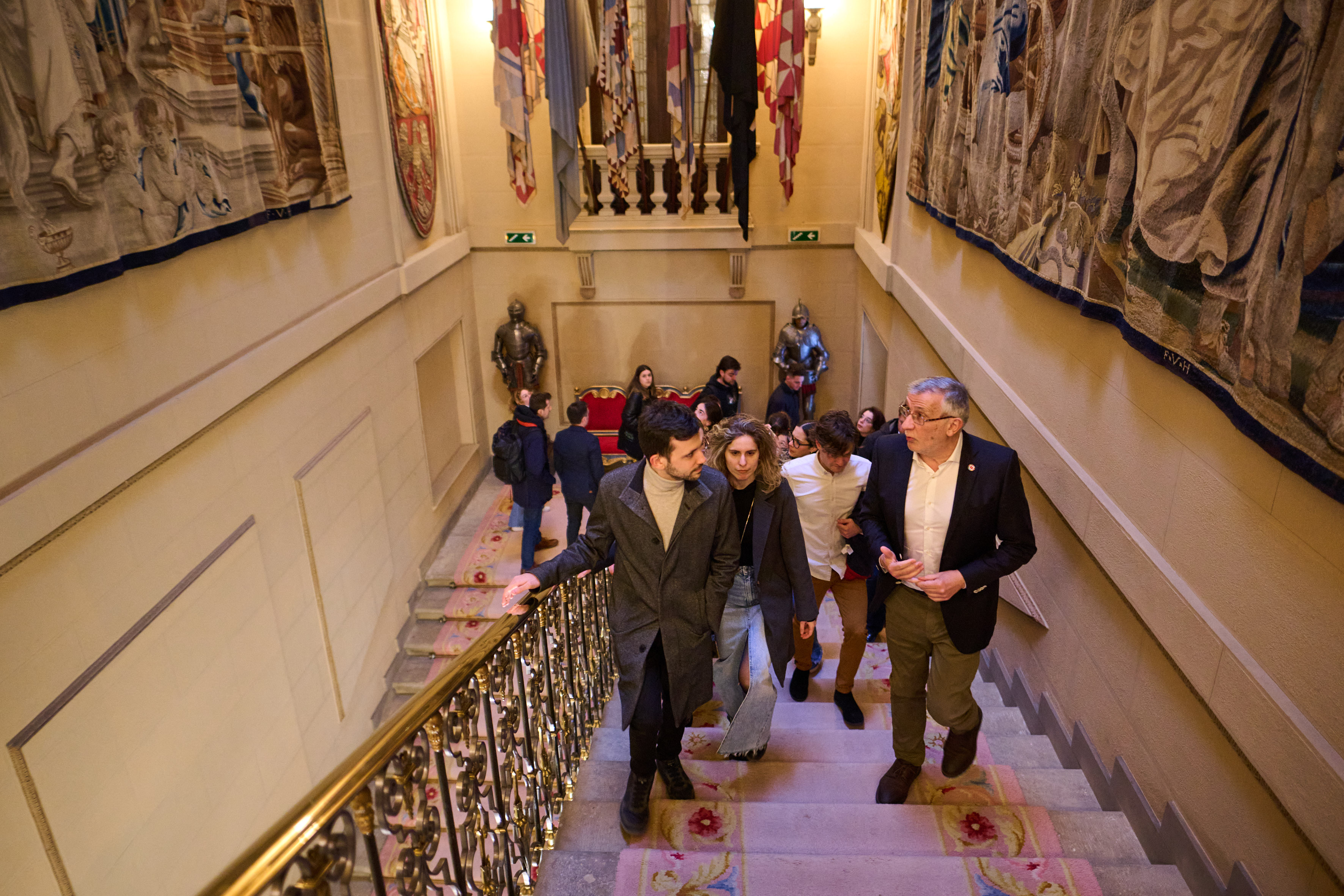 Taberna lehendakariordea, gaur Nafarroako Jauregian hartu dituzten ‘Equipo Europa’ taldeko gazteekin.