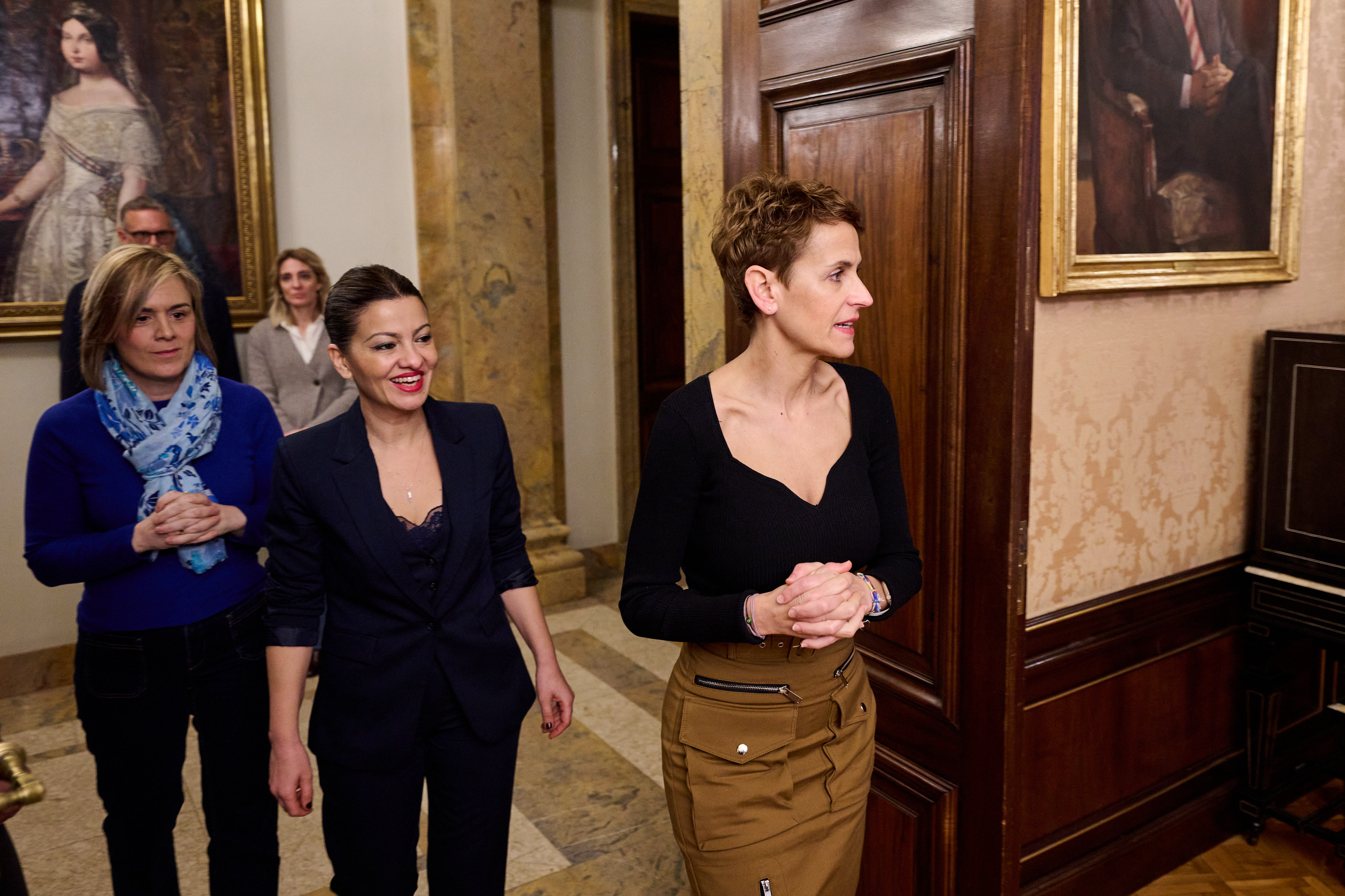 La Presidenta Chivite y la ministra Rego en el despacho del Palacio de Navarra.
