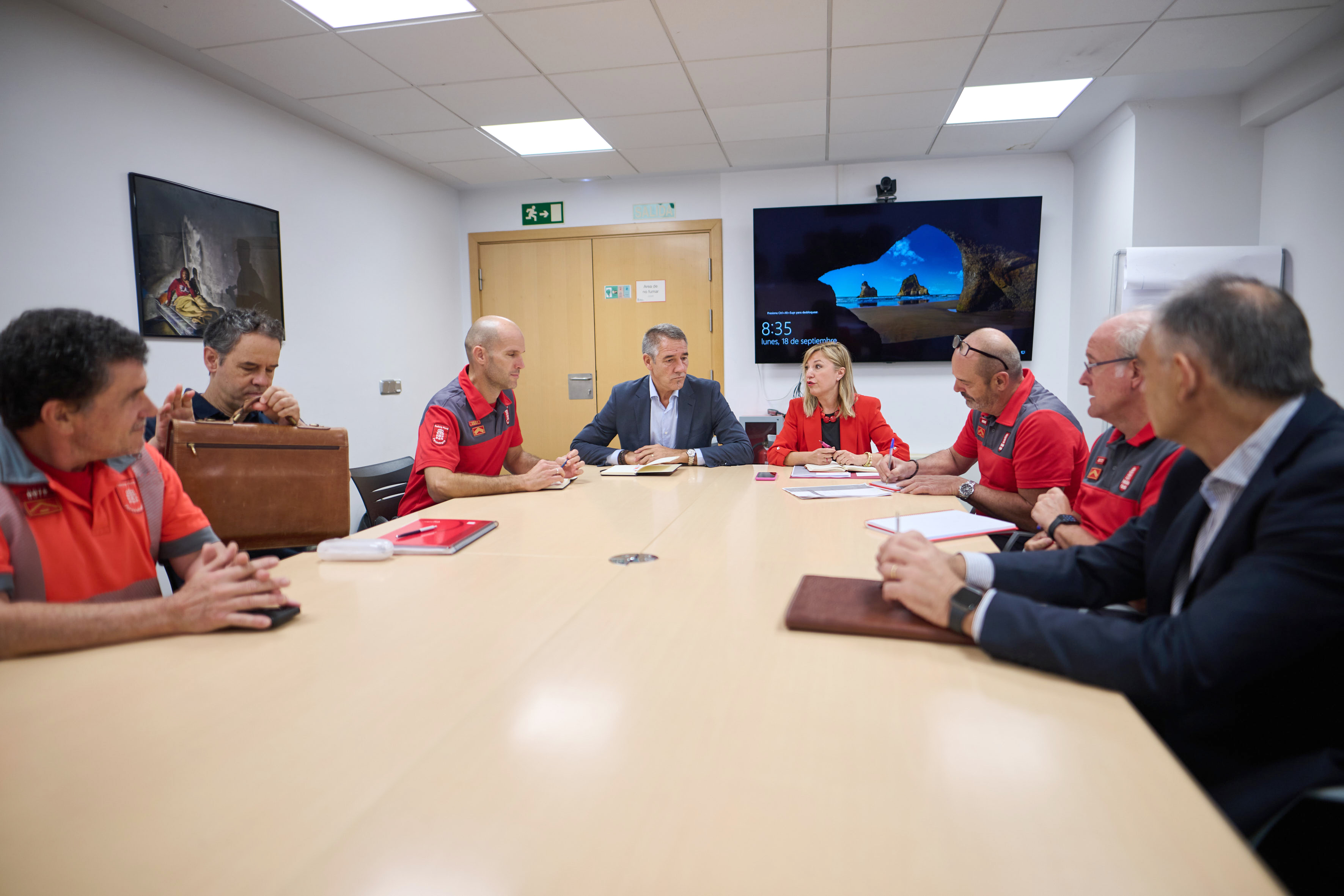 Amparo López Barneko, Funtzio Publikoko eta Justiziako kontseilariak eta Salvador Díez Barne zuzendari nagusiak lan-bilera egin dute gaur Ivan Ortueta Foruzaingoko buruarekin eta komisario nagusiekin, Iruñeko egoitzan. Bisita horrekin hasi da Barne Zuzendaritza Nagusiak Foruzaingoko langileen iritziak, egindako lana eta egoitzak eta instalazioak zuzenean ezagutzeko egingo duen bilera-sorta.