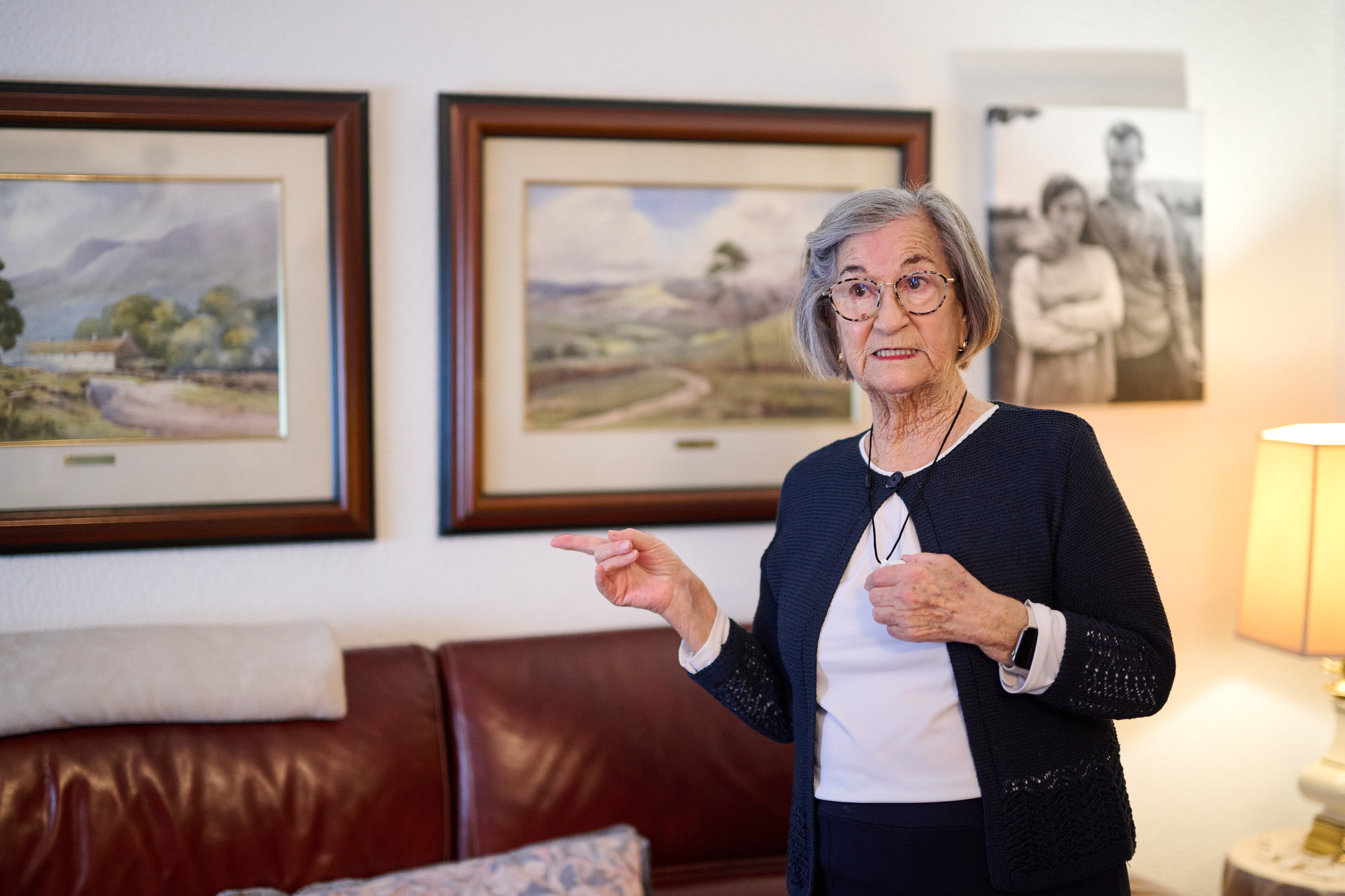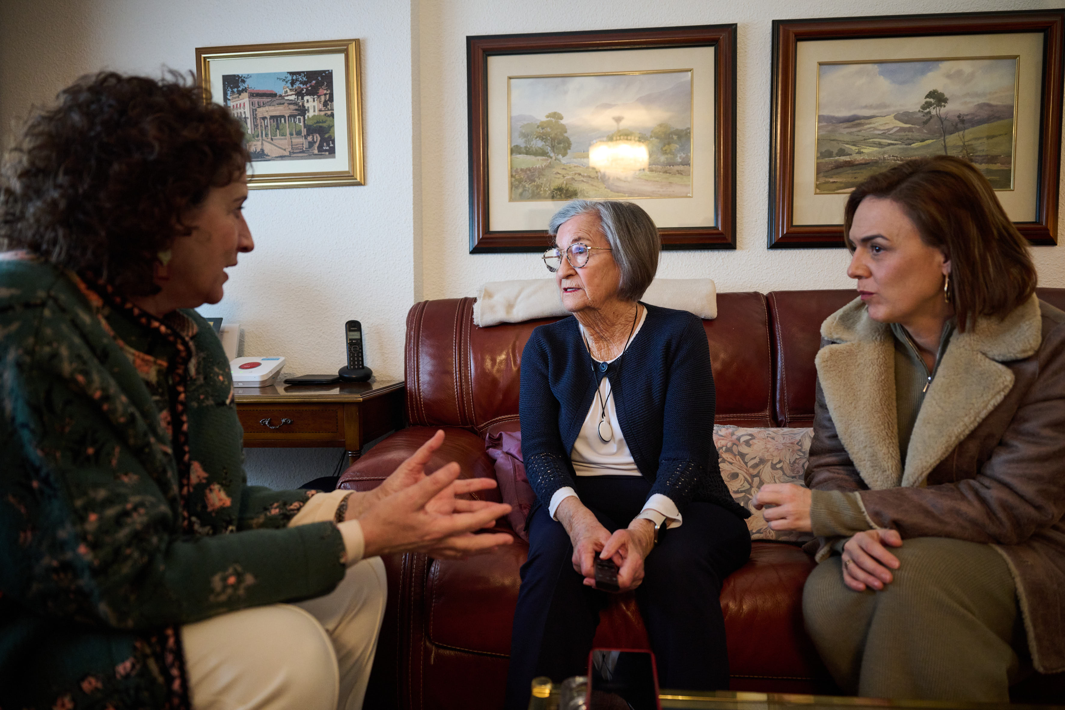 La consejera Maeztu visita a María Luisa Zapatero, usuaria del servicio de teleasistencia que actualmente en Navarra atiende a 11.000 personas.
