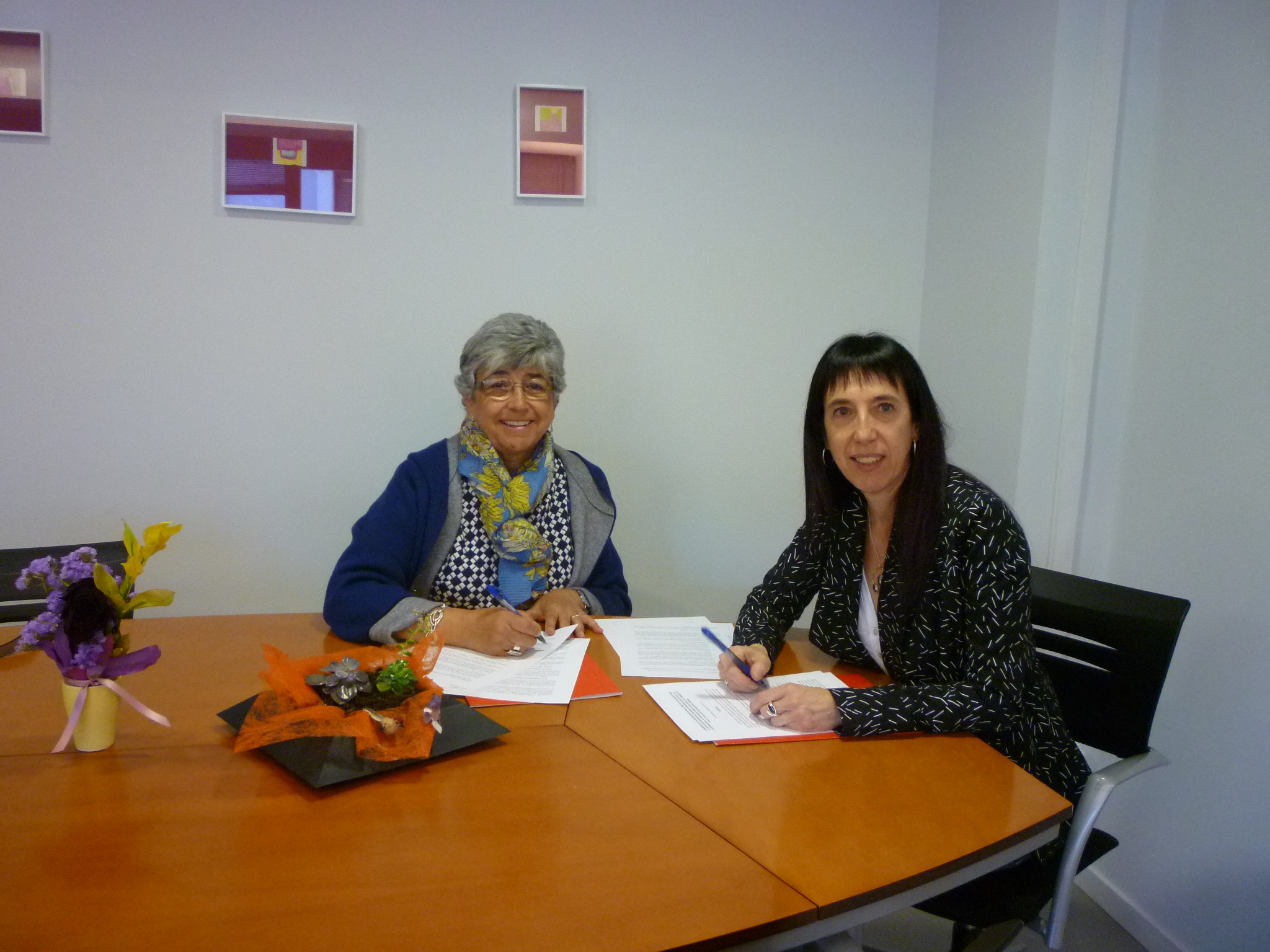 Pilar Bobes eta Mertxe Leranoz, Hitzarmenaren sinaduran.