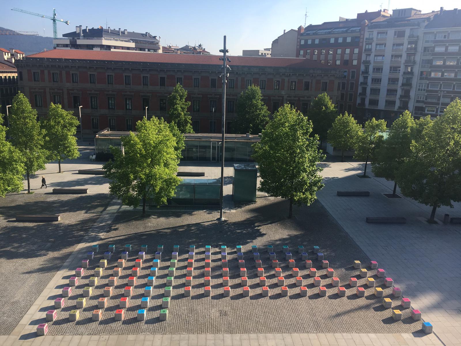 Iruñeko Balaurte Plazan asteazken honetan kokatutako instalazioak taula periodikoaren 150. urteurrena oroituko du. Hormigoizko 118 kuboetan elementu kimikoen oinarrizko informazioa jaso da gaztelania, euskera, ingelera eta frantsesez.