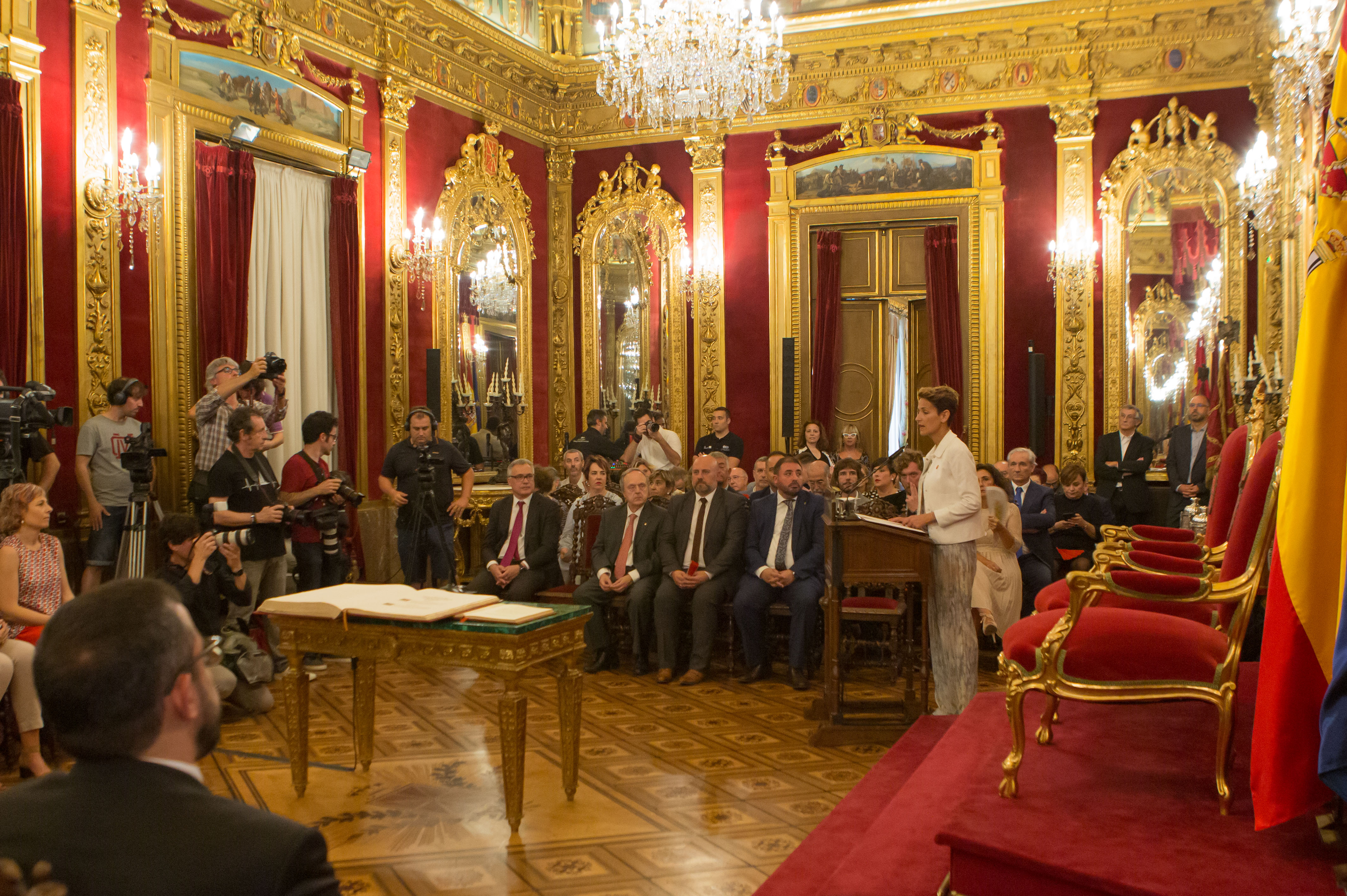 Nafarroako Lehendakari María Chivitek 2019-2023 Nafarroako Gobernurako izendatutako hamahiru kontseilariek karguak hartu dituzte gaur eguerdian Nafarroako Jauregiko Tronuen Aretoan egindako ekitaldian.