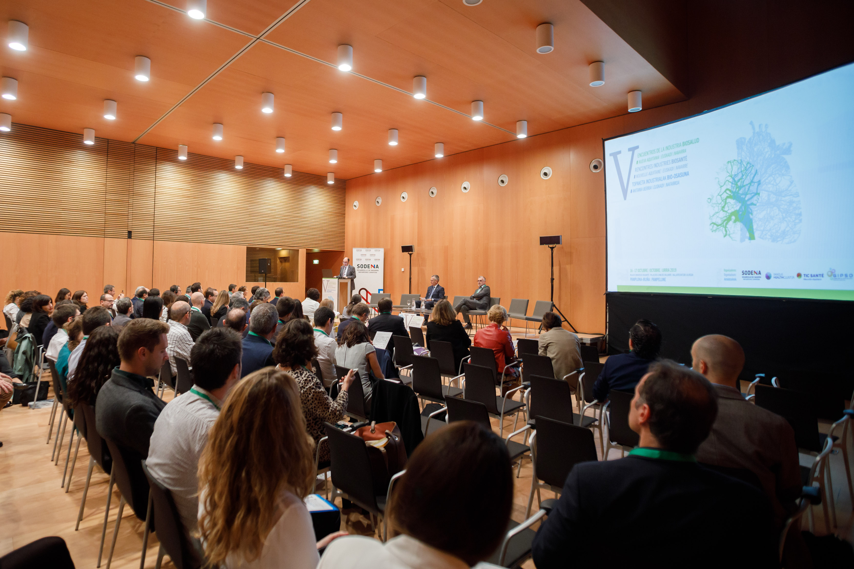 Enpresa, ospitale eta ikerketa-zentroetako 150 ordezkari inguru ari dira parte hartzen Iruñean Akitania Berria/Euskadi/Nafarroa Bioosasun Industriaren V. topaketan ". Topaketa horiek gaur eta bihar egingo dira, Nafarroako Biltzar Jauregian eta Auditoriumean (Baluarten).