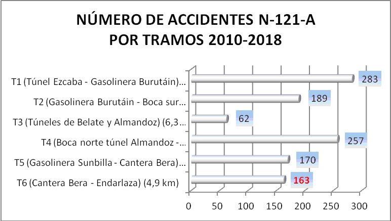 N-121-A errepidea Nafarroako errepideen sare nagusiko bidea da, ezbehar-tasa gehienekoa, urtean batez beste 125 istripu izaten baitira, eta Foruzaingoa bertako ezbehar-tasaren datuak aztertzen ari da aspaldiko urtetan.