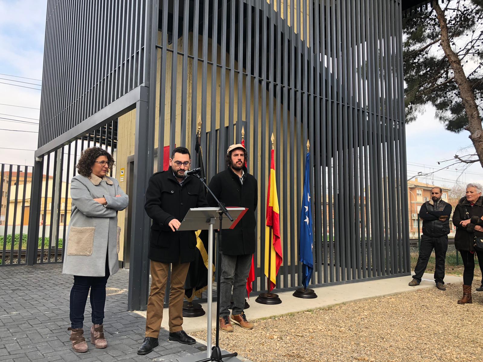 Agintariak ireki berri den pasabidearen aurrean.