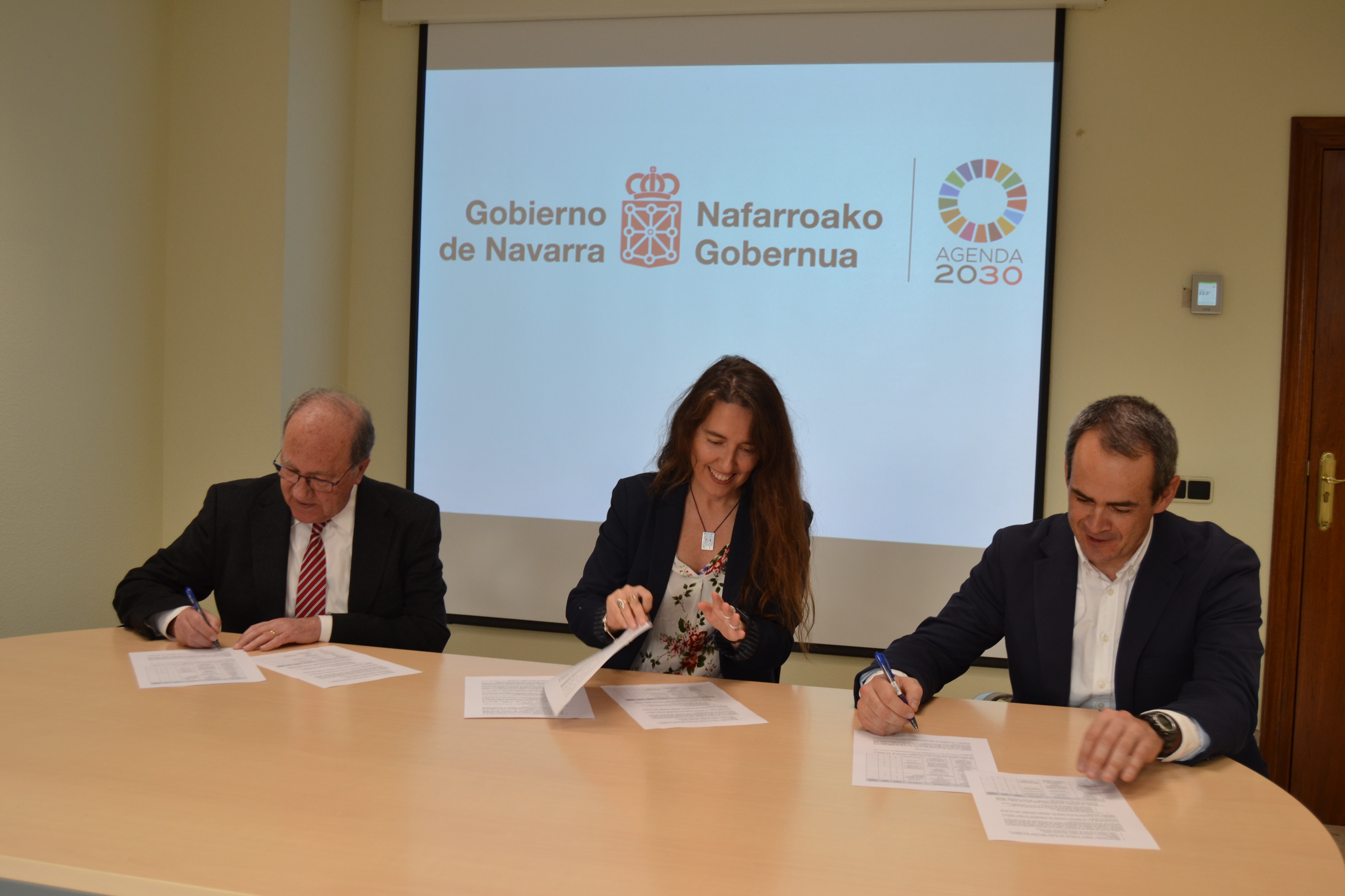 Hitzarmena sinatu dute Nafarroako Gobernuko Industria, Energia eta S3 Proiektu Estrategikoetako zuzendari nagusi Yolanda Blancok, Galiziako Mineira Ganbera Ofizialeko lehendakari Juan de Dios Martínek eta GEoalcaliko Harreman Instituzionaletako zuzendari Ricardo Pérezek.