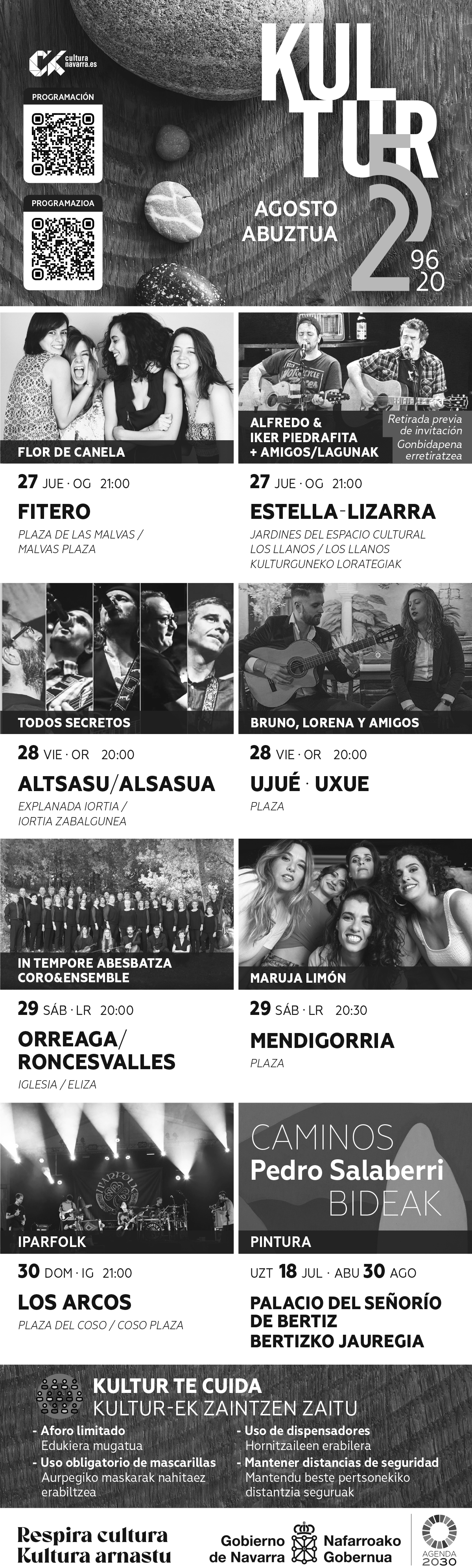 Fitero, Lizarra, Altsasu, Uxue, Orreaga, Mendigorria eta Los Arcos herrietan egingo diren musika emanaldien egitarau oparoarekin emango dio amaiera abuztuari Kultur 2020 Programak. Kontzertuak ostegunean hasiko dira eta datorren igandera arte luzatuko dira.
