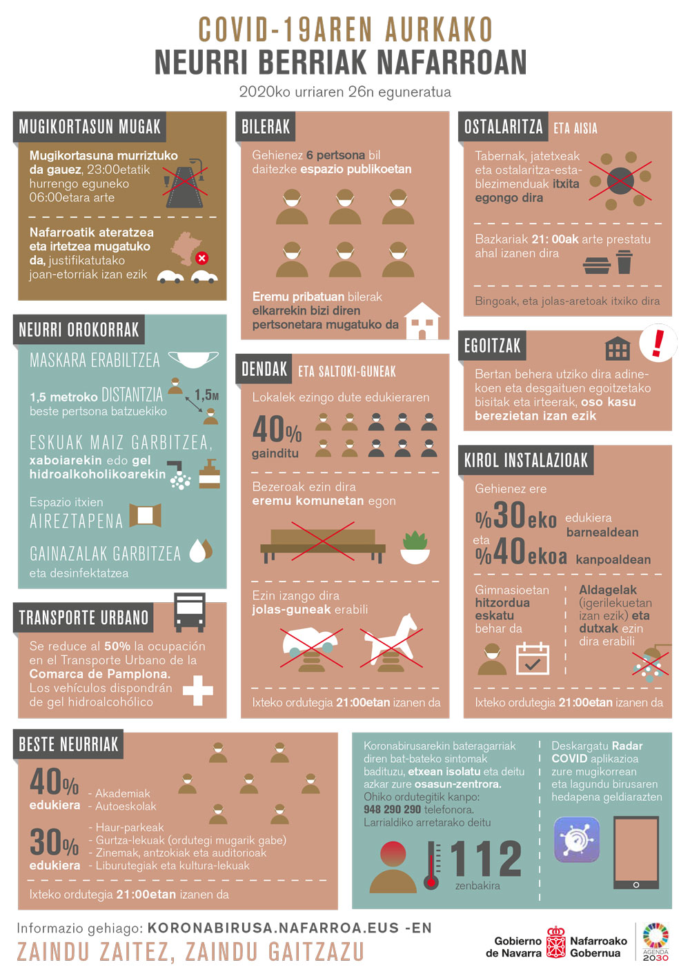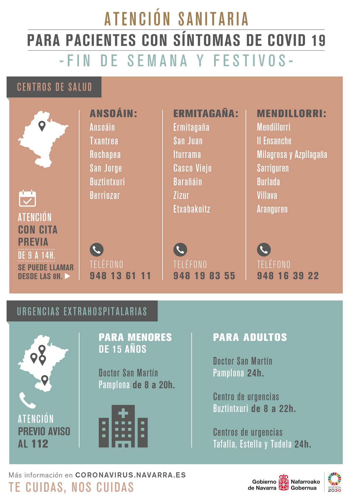 Nafarroako Osasun Zerbitzu-Osasunbideako Lehen Arretako zentroetan urriaren 12ko astean hasi ziren testak banatzen Sarriguren, Lodosa, Viana eta Auritzeko oinarrizko zonetan eta Cadreitan eta Carcastillon ere bai, une horretan bi herri horietan eragin altua izateagatik. Hurrengo astean, Leitza, Irurtzun, Ultzama, Doneztebe, Elizondo, Salatzar, Tafalla eta Zizur-Etxabakoitzeko oinarrizko zonetara nahiz Buztintxuri eta San Martingo zentroetan kokatutako Ospitalez kanpoko Larrialdi Zerbitzuetara zabaldu ziren. Aste honetan zehar, zentro berriak sartu dira, sarearen %60ra iritsi arte. Azkenik, azaroaren 2rako amaituko da testak banatzen NOZ-Oko Lehen Arretaren sareko zentro guztien artean.